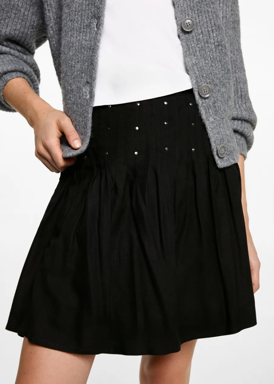 OpisModel prosty. Krótki krój. Ozdobne ćwieki. Zapięcie na zamek z boku. Modelka ma 172 cm wzrostu i nosi rozmiar M.