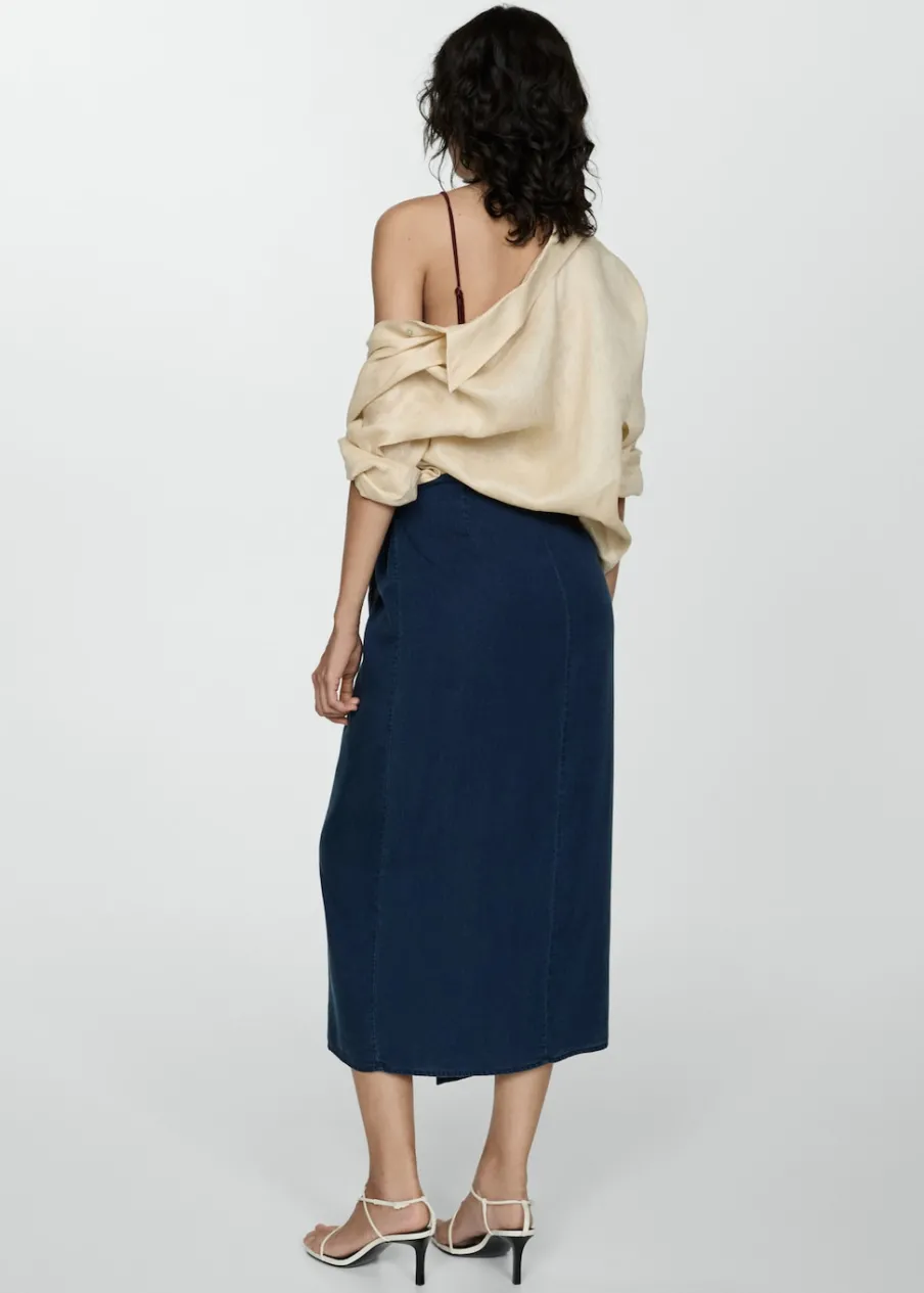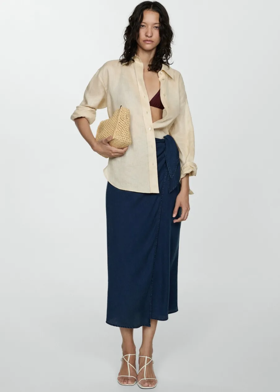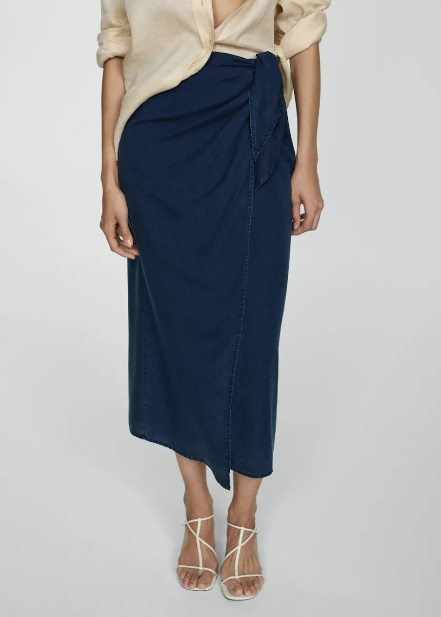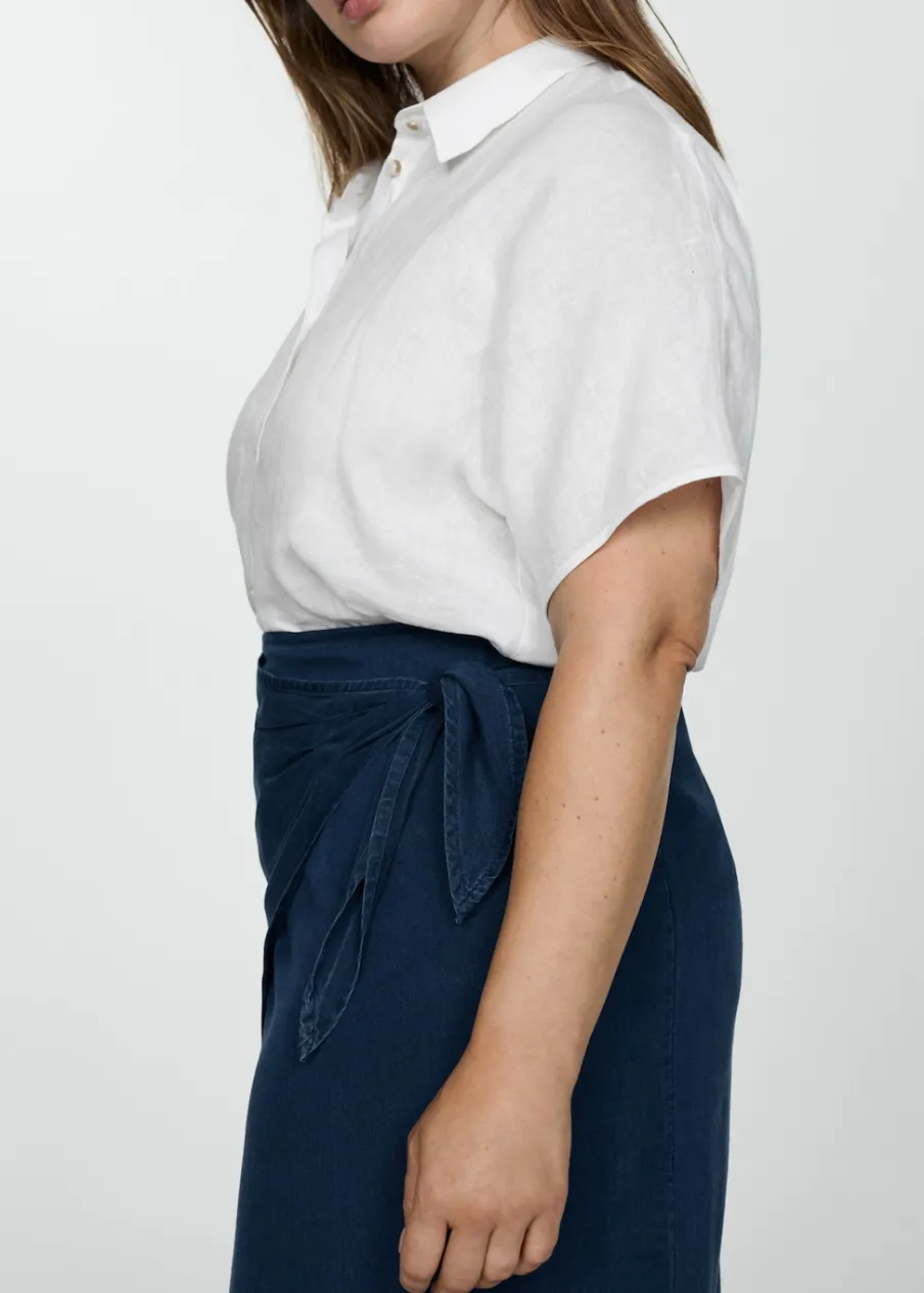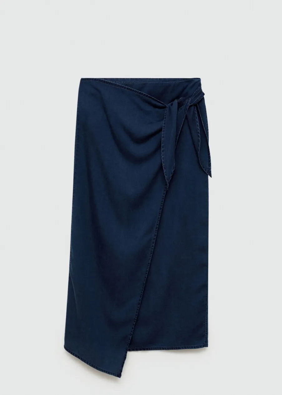 Tkanina lyocell. Krój do kolan. Model zakładany. Elastyczna gumka z tyłu. Wiązane zapięcie. Dostępne w Plus Size.