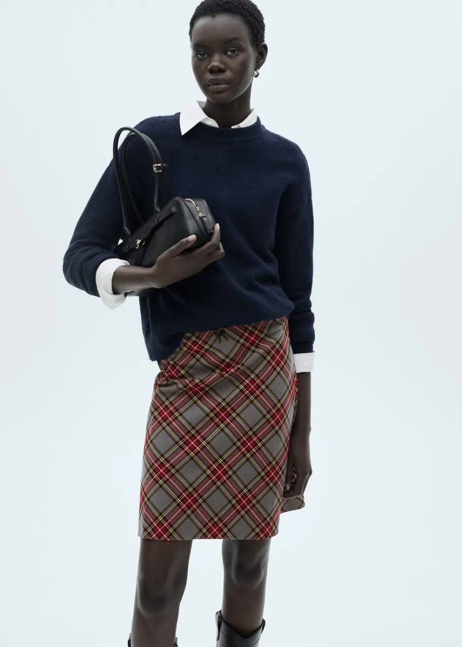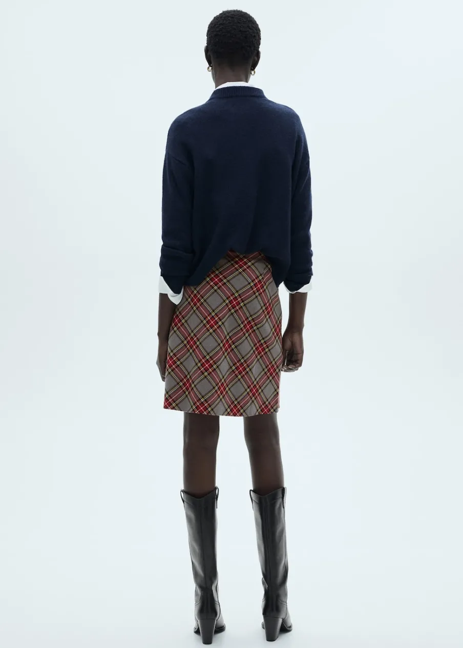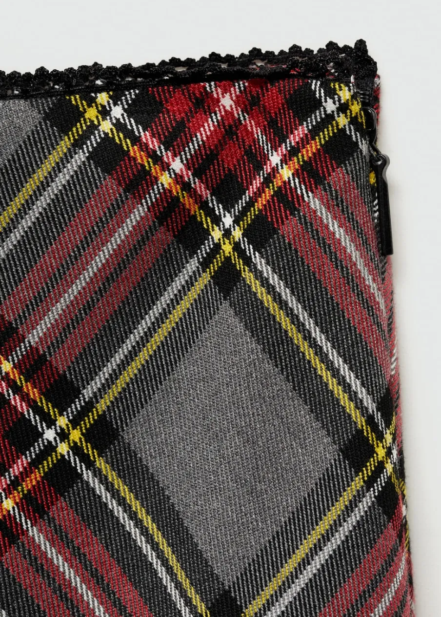 OpisLejąca tkanina. Wzór w kratę. Model ołówkowy. Krój do kolan. Kryte zapięcie na zamek z boku. Wykończenia z k…