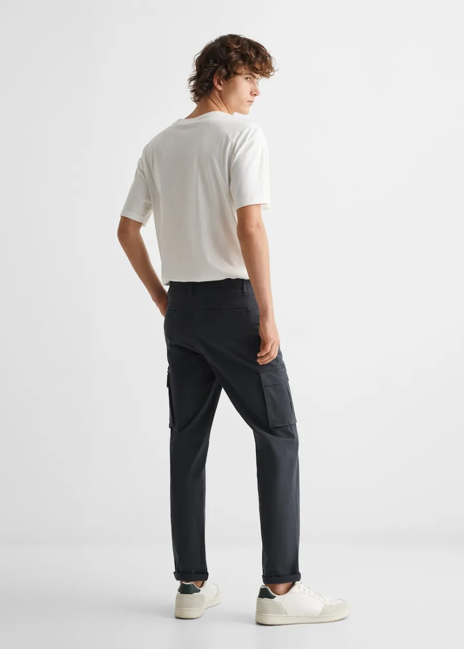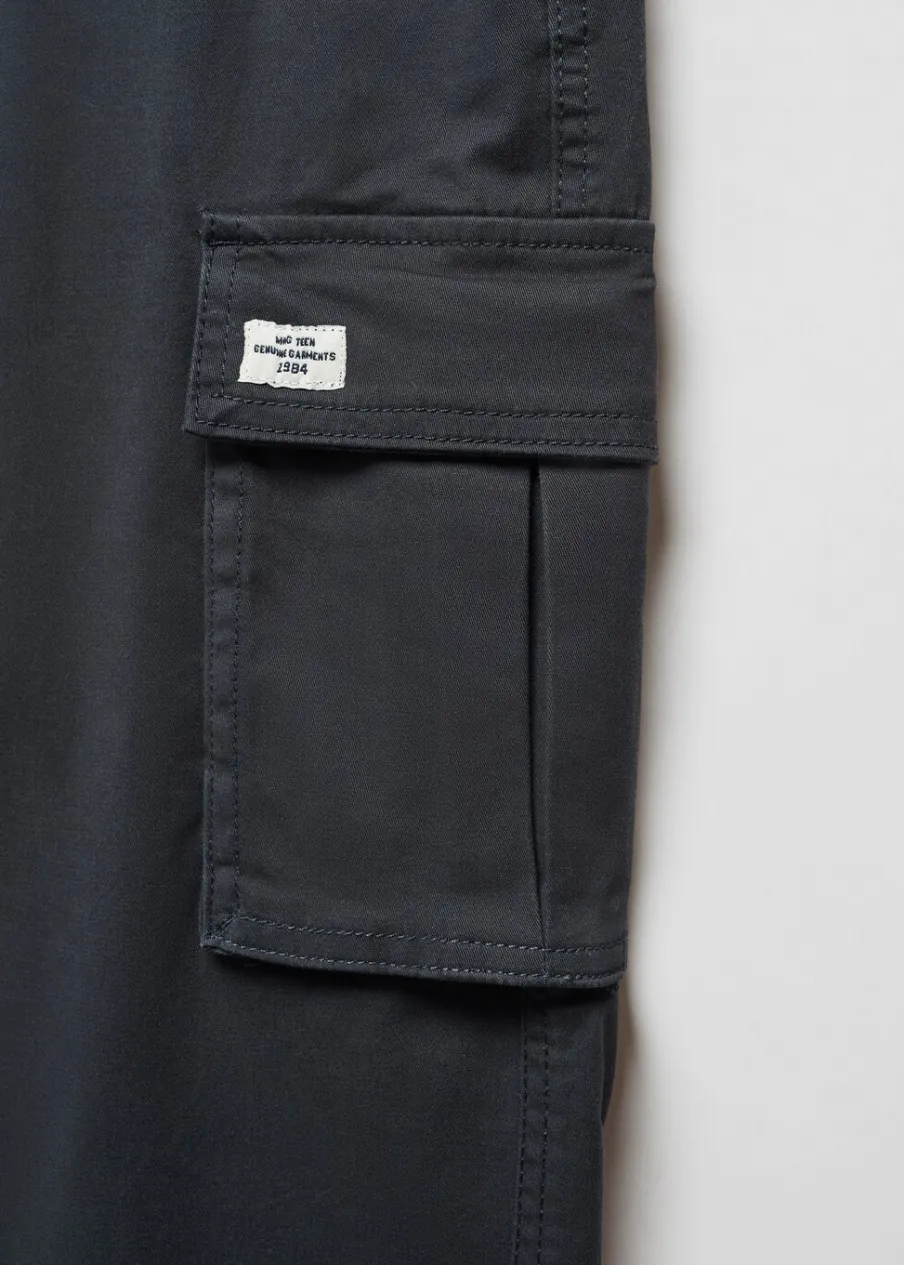 OpisTkanina bawełniana. Model prosty. Model długi. Dwie kieszenie. Dwie kieszenie cargo. Zapięcie na suwak i guzik.