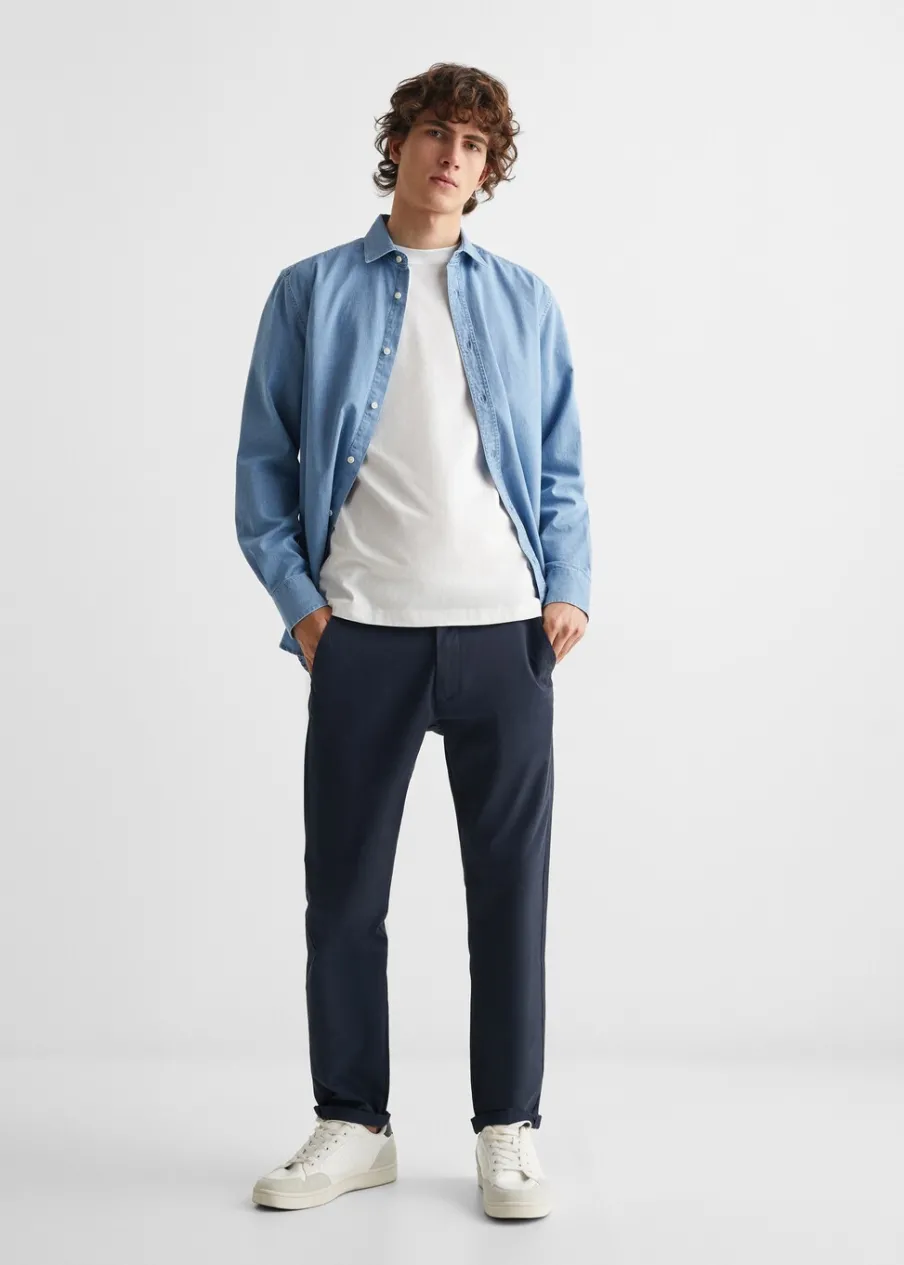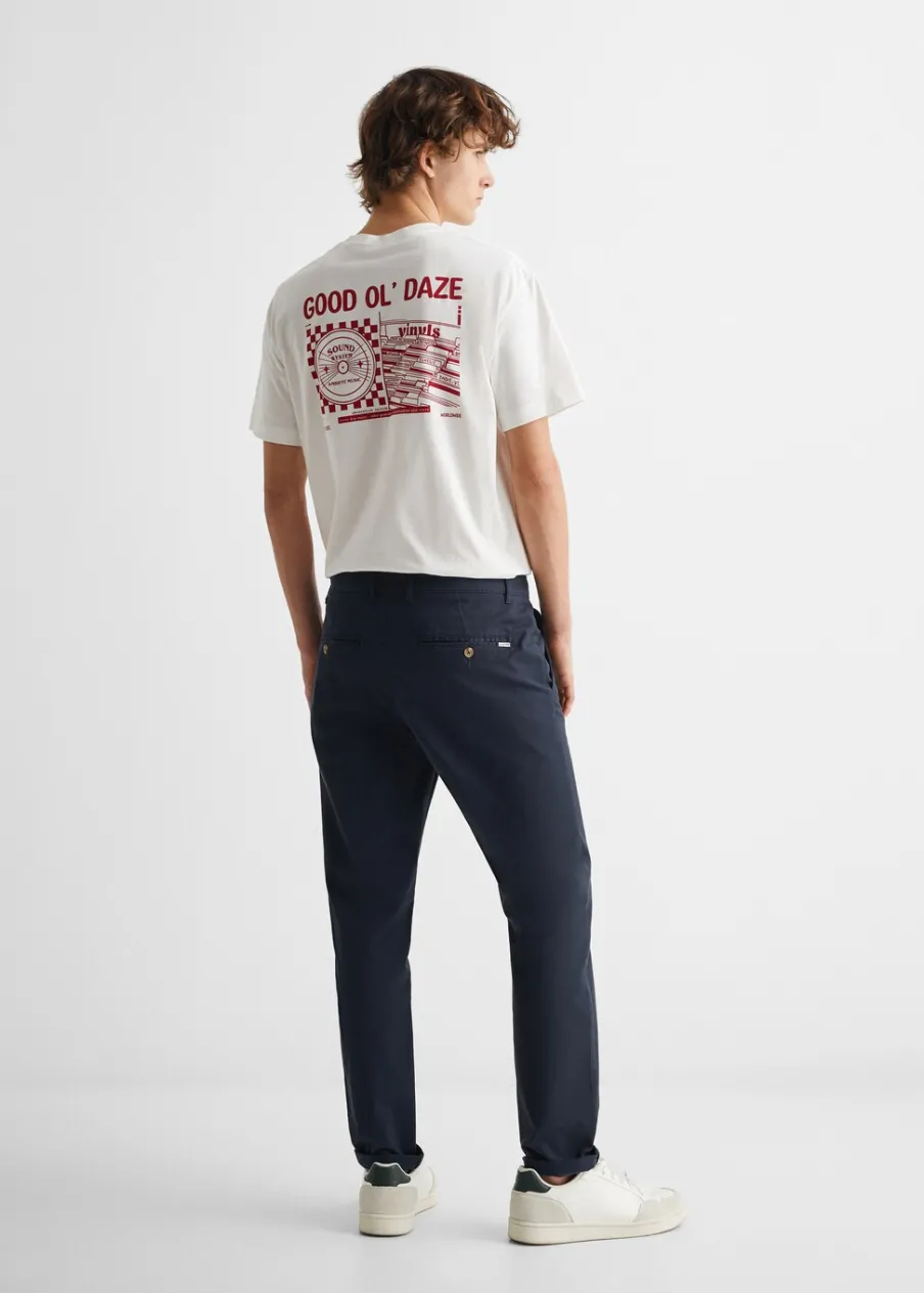 Tkanina bawełniana. Slim-fit. Styl chinos. Model prosty. Kieszeń wpuszczana. Dwie kieszenie. Zapięcie na suwak i guzik.