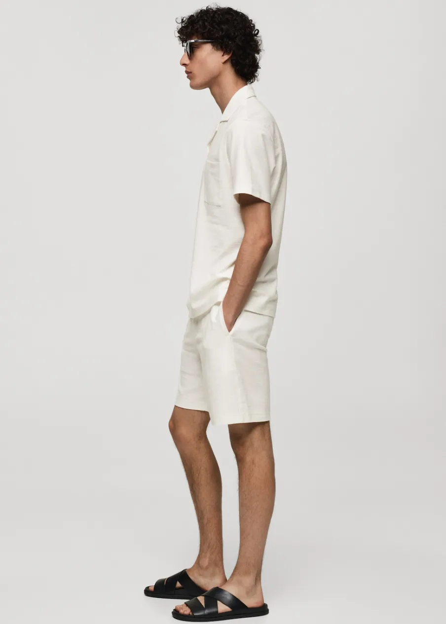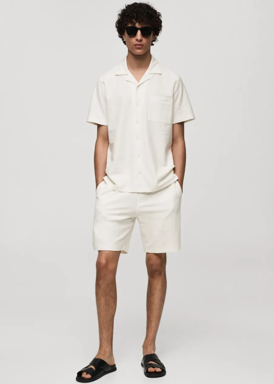 Dostępny zestaw total look. Tkanina bawełniana. Elastyczny pas z regulowanym sznurkiem. Dwie kieszenie z przodu. Nakładana kieszeń z tyłu. Prosty dół. Model ma 185 cm wzrostu i nosi rozmiar 42.