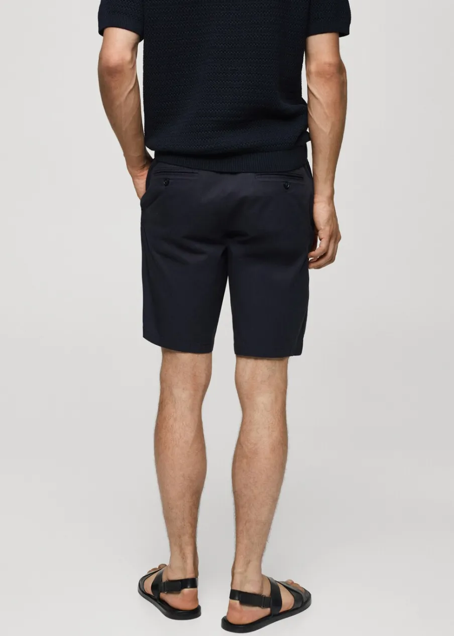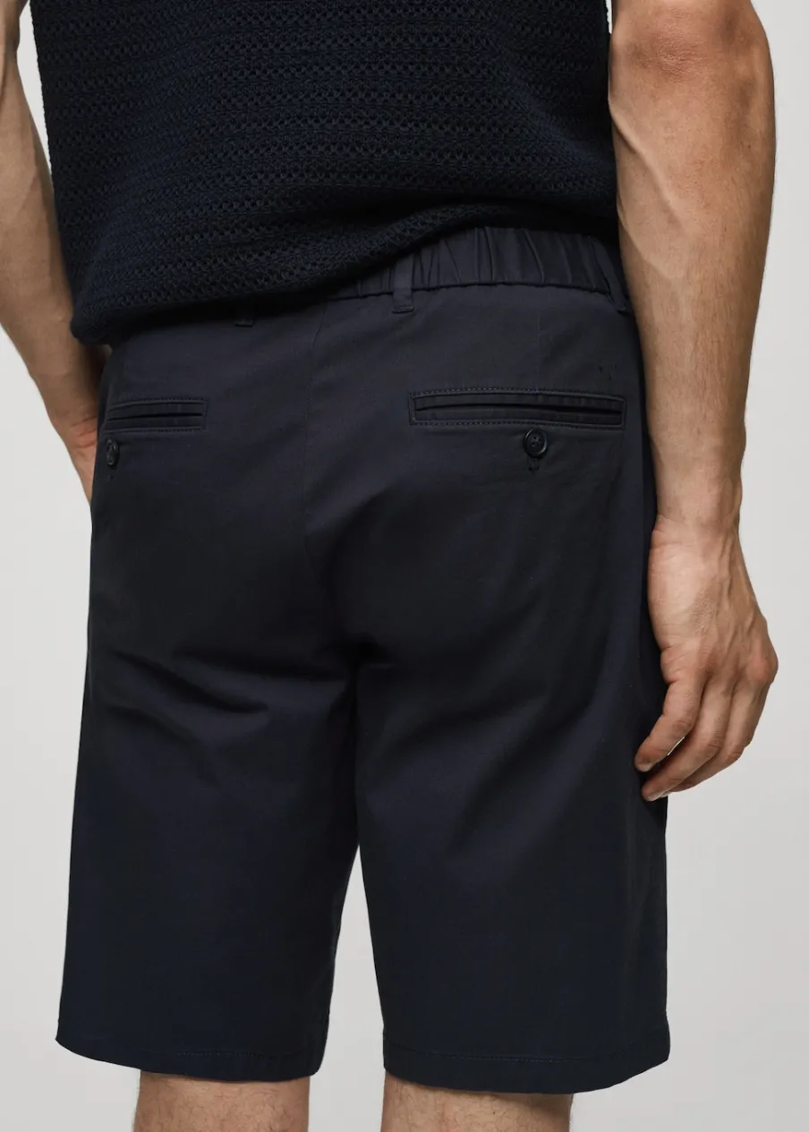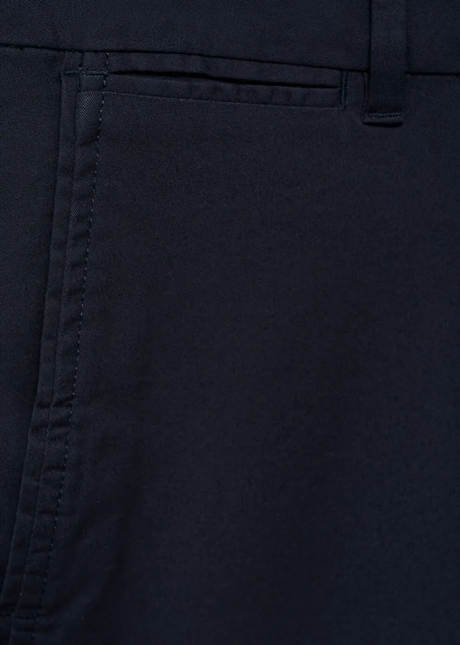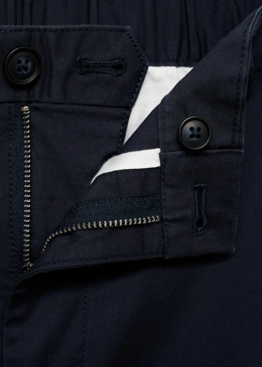 Slim-fit. Tkanina mieszanka bawełny. Szlufki na pasek. Zapięcie na suwak i guzik. Dwie kieszenie z przodu. Kieszeń na bilon. Elastyczne marszczenie z tyłu w talii. Tylna kieszeń wpuszczana zapinana na guzik. Model ma 187 cm wzrostu i nosi rozmiar 42.