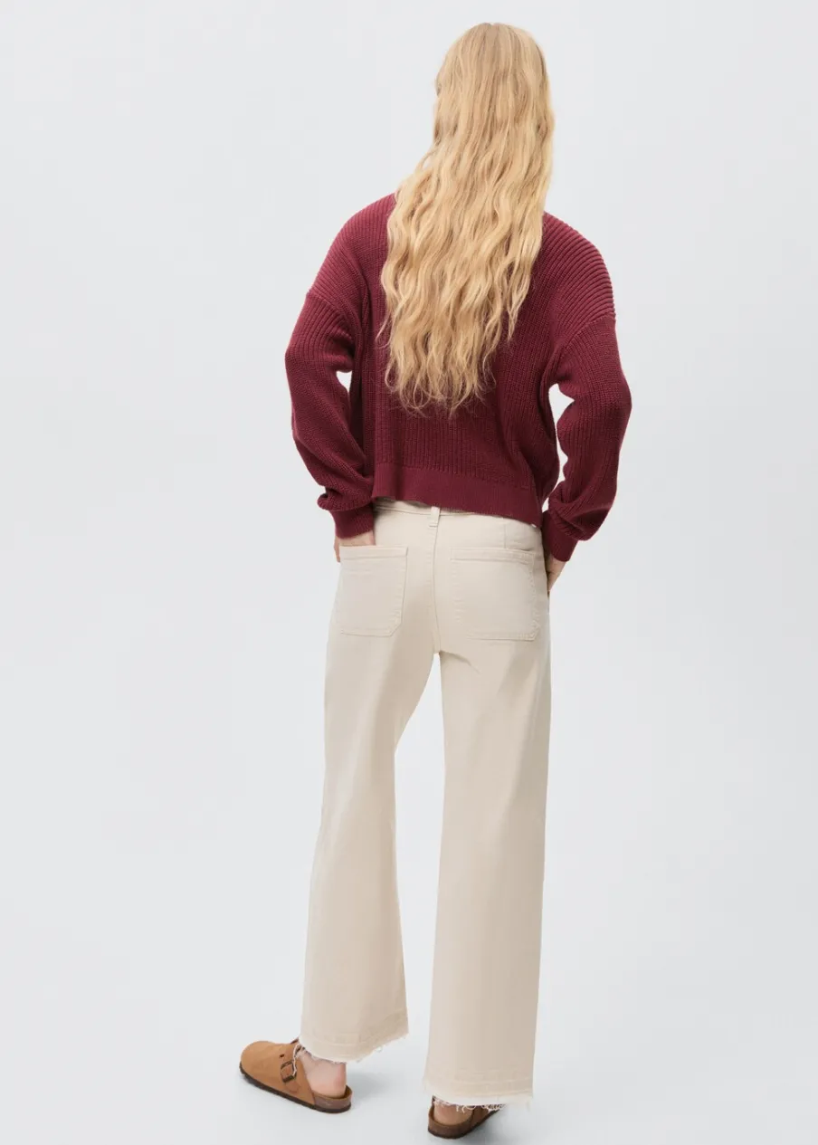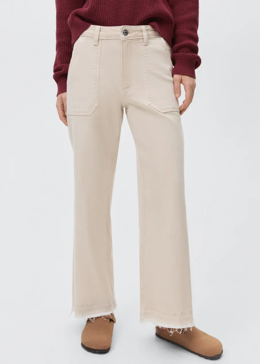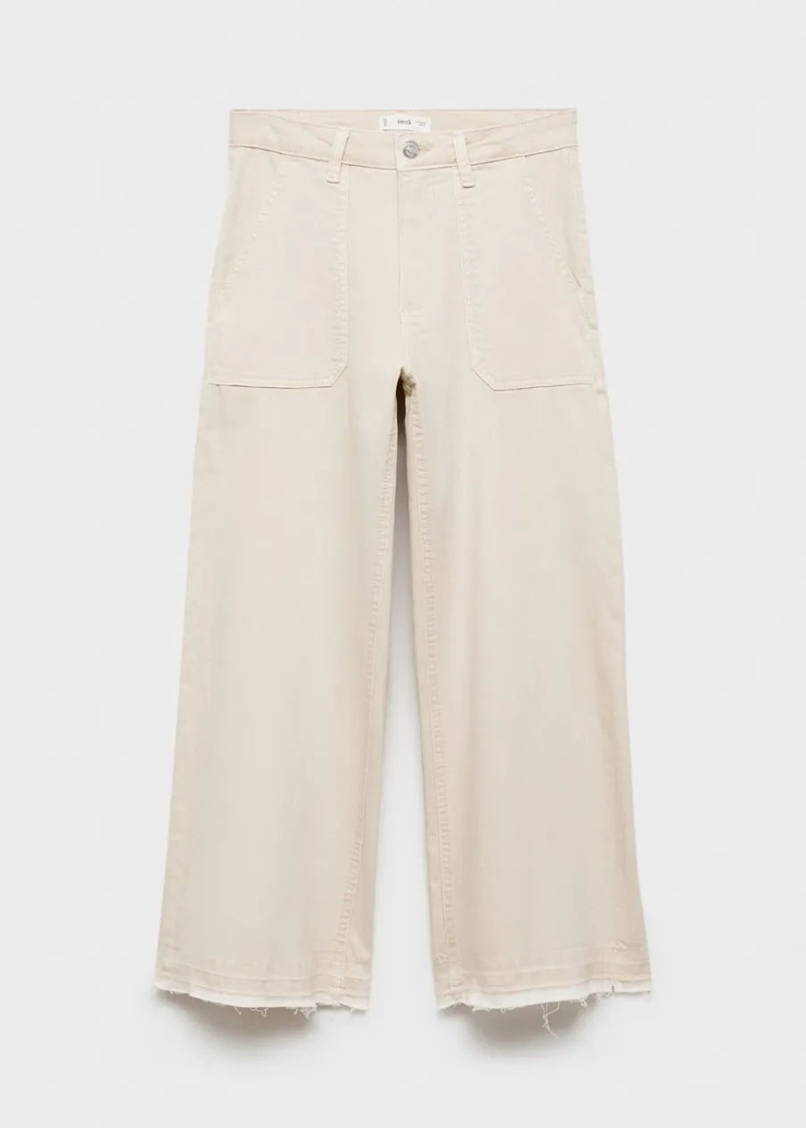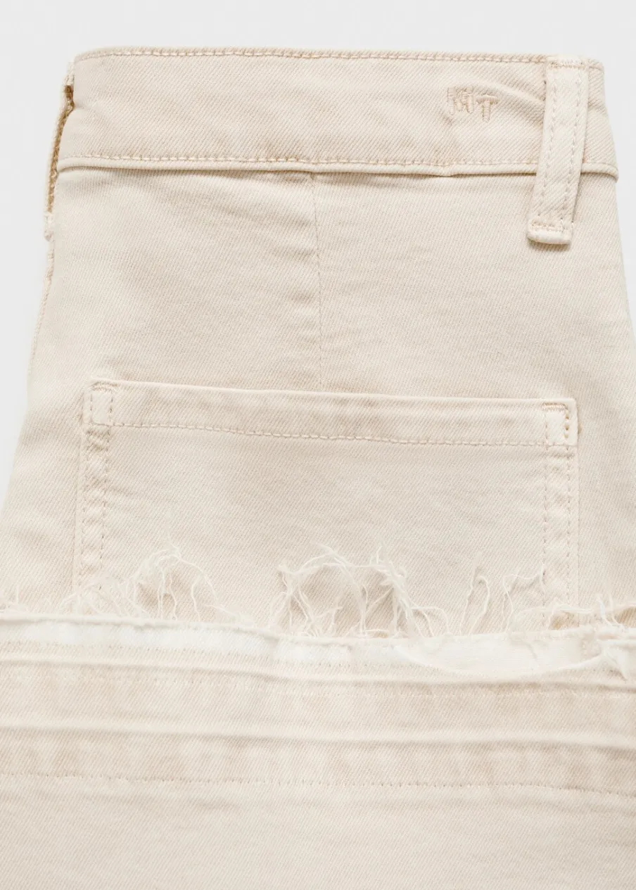 Tkanina bawełniana w dżinsowym stylu. Fason culotte. Deseń crop. Szlufki. Dwie kieszenie boczne. Dwie kieszenie nakładane z tyłu. Zapięcie na suwak i guzik. Modelka ma 172 cm wzrostu i nosi rozmiar M.