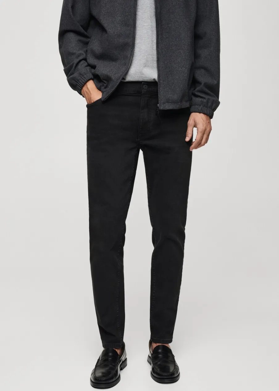 Krój skinny: jeansy bardziej dopasowane. Tkanina bawełniana. Jeansowy styl. Czarny. Szlufki na pasek. Średni stan. Zapięcie na suwak i guzik. Kieszeń na bilon. Dwie kieszenie nakładane z tyłu. Model ma 185 cm wzrostu i nosi rozmiar 42. Denim w jasnym kolorze dostępny tylko online.