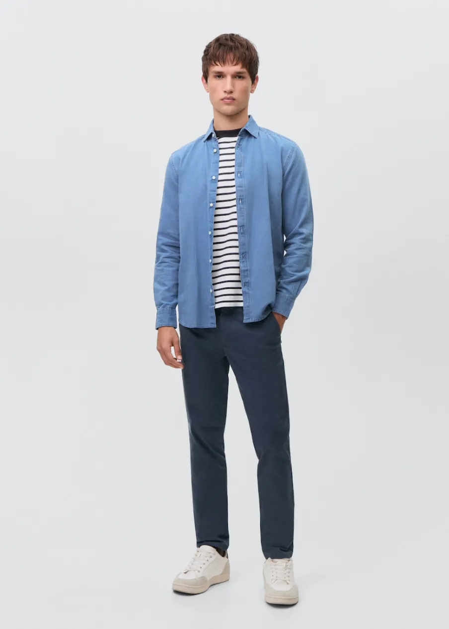 OpisBawełniana tkanina. Model prosty. Średni stan. Dwie kieszenie z przodu. Dwie wpuszczane kieszenie z tyłu. Szlufki…