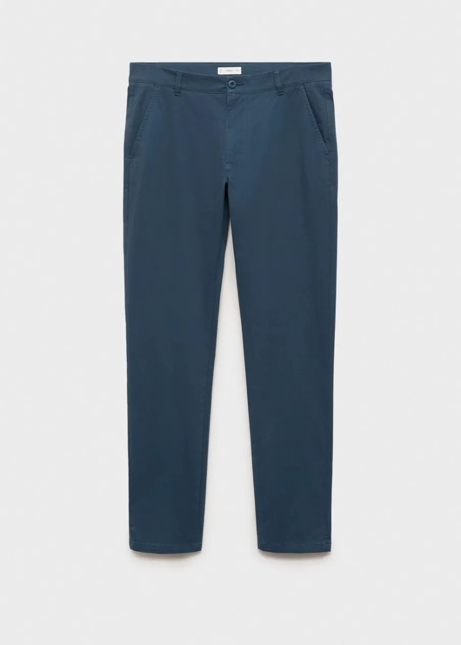 Bawełniana tkanina. Model prosty. Średni stan. Dwie kieszenie z przodu. Dwie wpuszczane kieszenie z tyłu. Szlufki w pasie. Zapięcie na guzik i zamek.