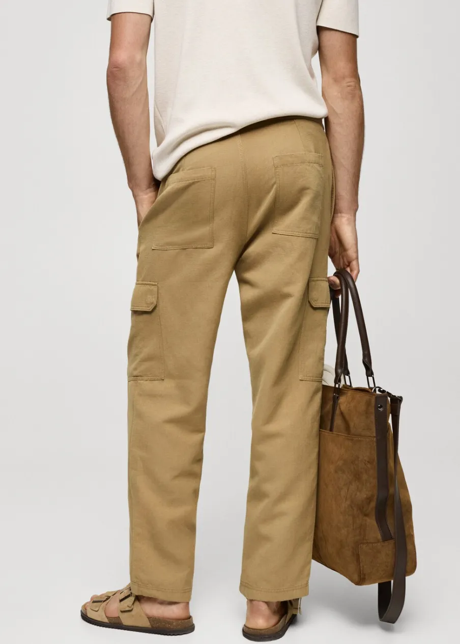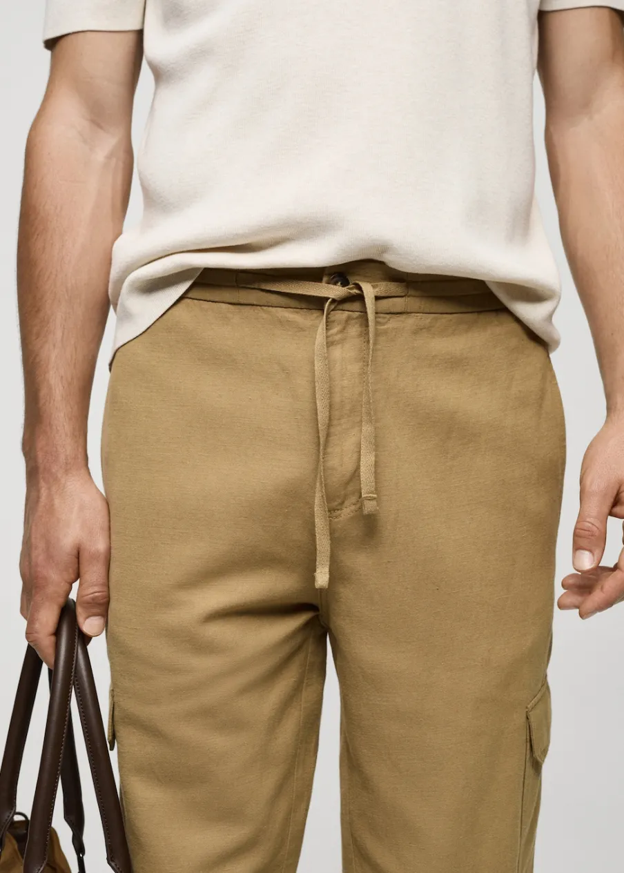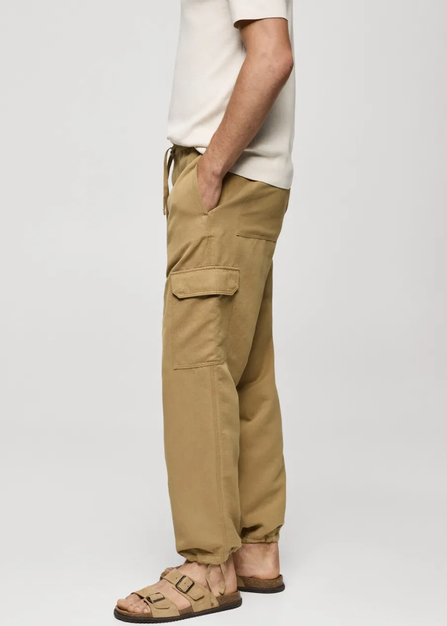 Wyłącznie online. Fason cargo. Elastyczny pas z regulowanym sznurkiem. Dwie kieszenie cargo. Dwie kieszenie nakładane z tyłu. Regulowany sznurek u dołu. Model ma 185 cm wzrostu i nosi rozmiar 42. Zapięcie na zamek i guzik z przodu.