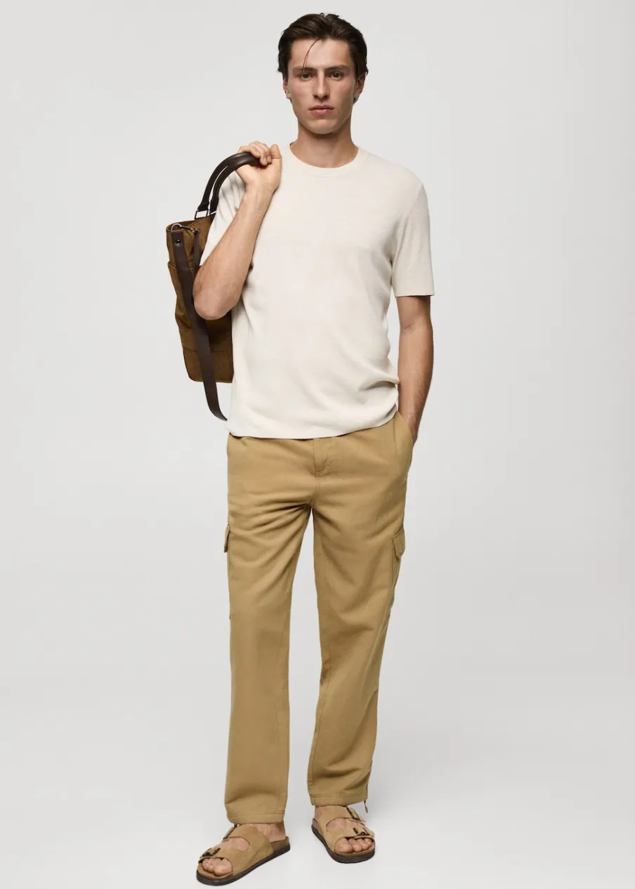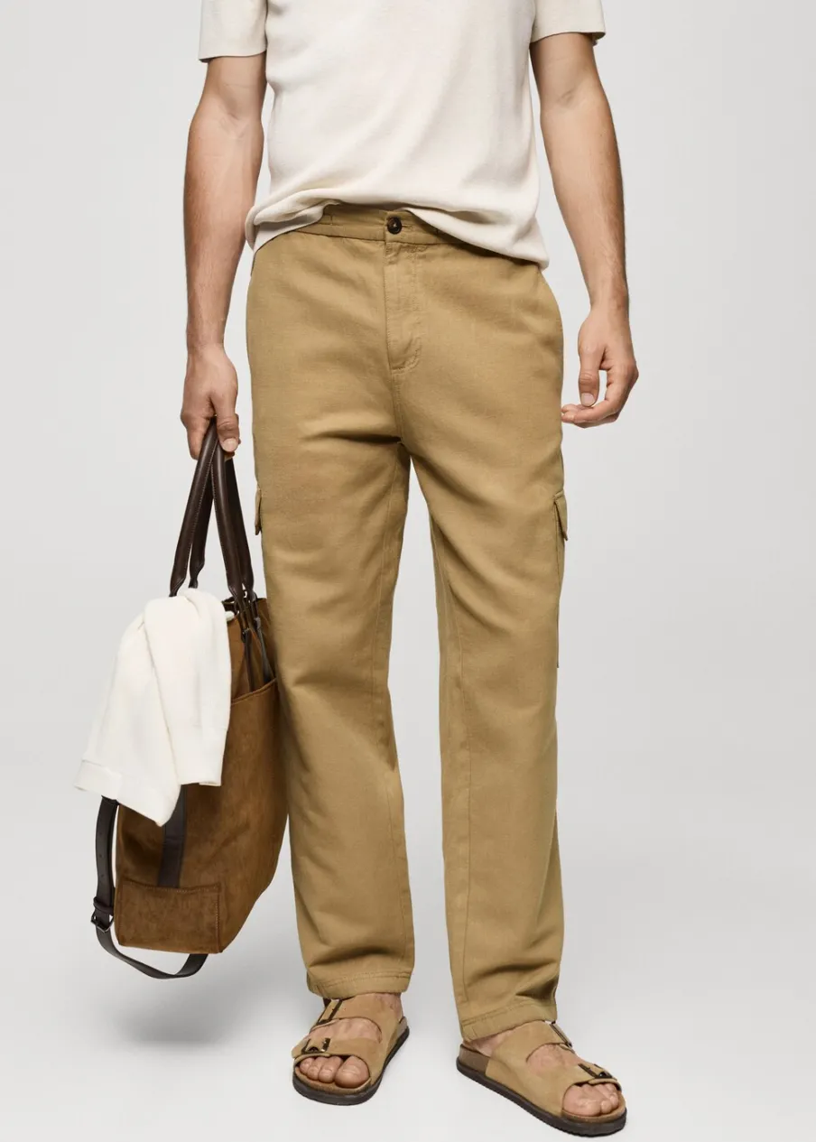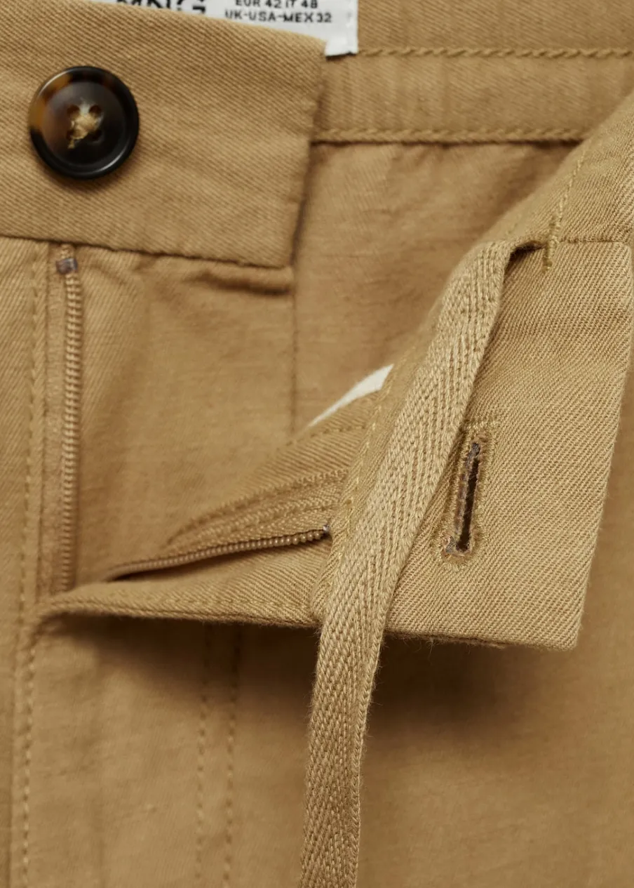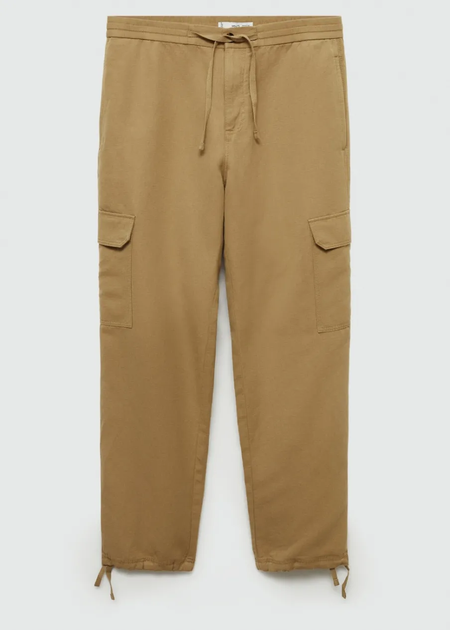 Wyłącznie online. Fason cargo. Elastyczny pas z regulowanym sznurkiem. Dwie kieszenie cargo. Dwie kieszenie nakładane z tyłu. Regulowany sznurek u dołu. Model ma 185 cm wzrostu i nosi rozmiar 42. Zapięcie na zamek i guzik z przodu.