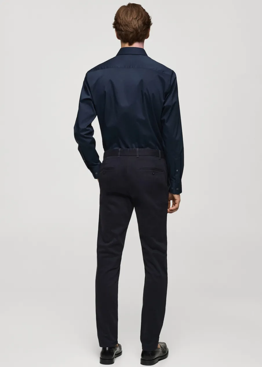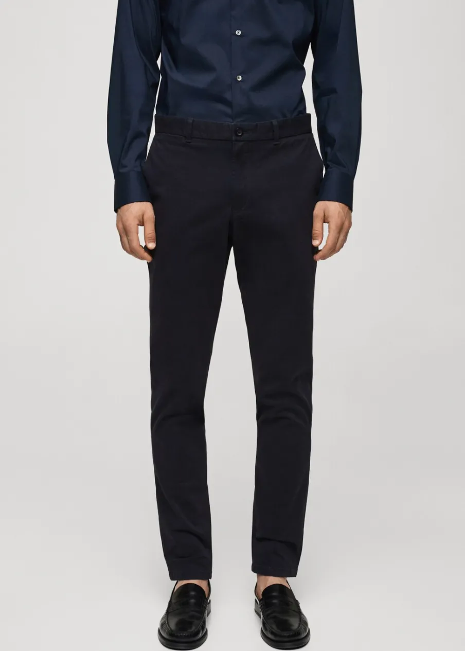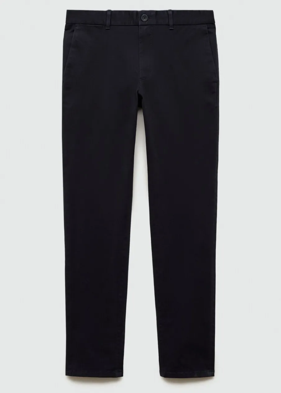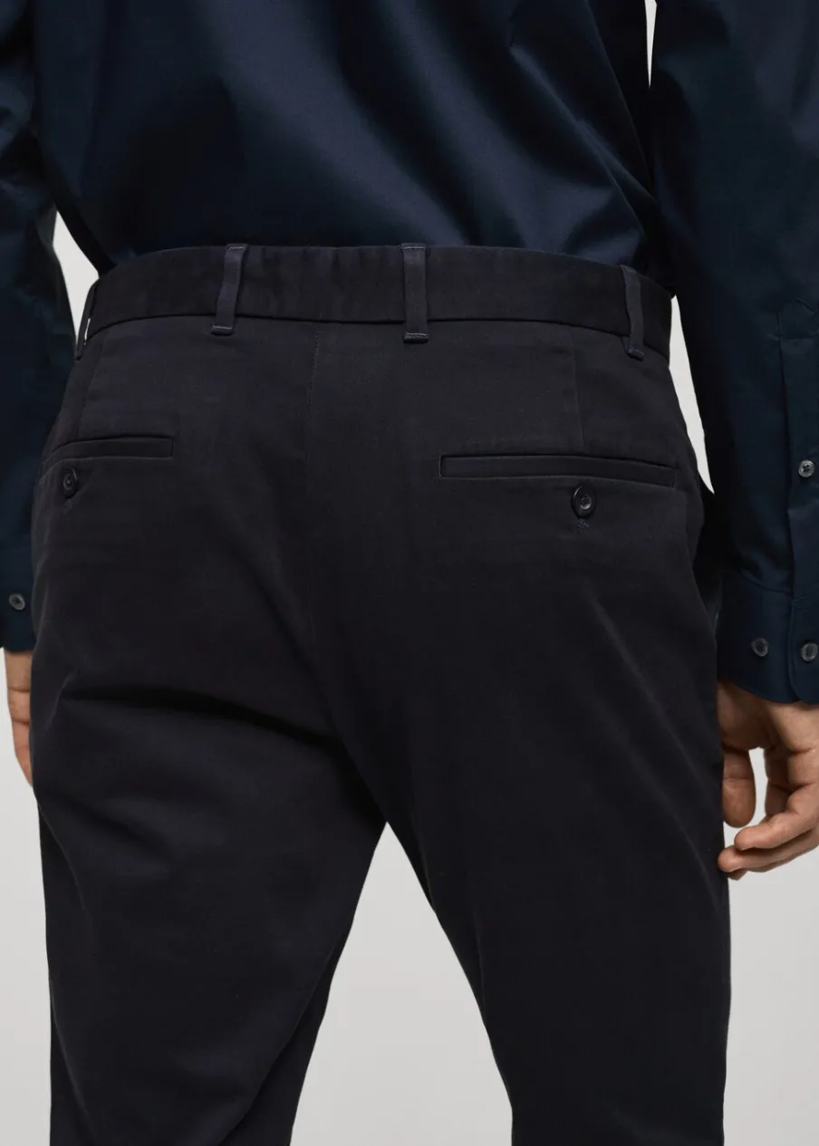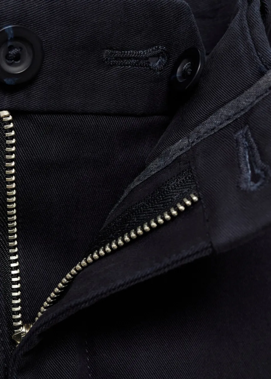 OpisSlim-fit. Styl chinos. Pięć kieszeni. Elastyczna, bawełniana tkanina. Szlufki na pasek. Zapięcie na suwak i guzi…