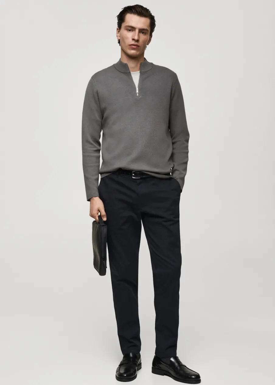 OpisTkanina mieszanka bawełny. Styl chinos. Slim-fit. Zapięcie na suwak i guzik. Szlufki na pasek. Pięć kieszeni. Dw…