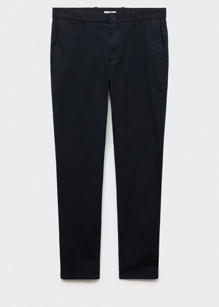 Tkanina mieszanka bawełny. Styl chinos. Slim-fit. Zapięcie na suwak i guzik. Szlufki na pasek. Pięć kieszeni. Dwie kieszenie boczne. Dwie wpuszczane kieszenie z tyłu. Model ma 187 cm wzrostu i nosi rozmiar 42.