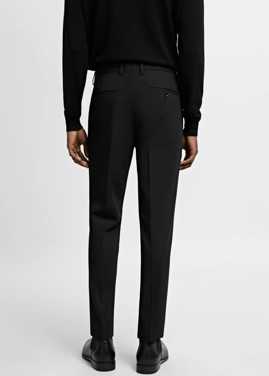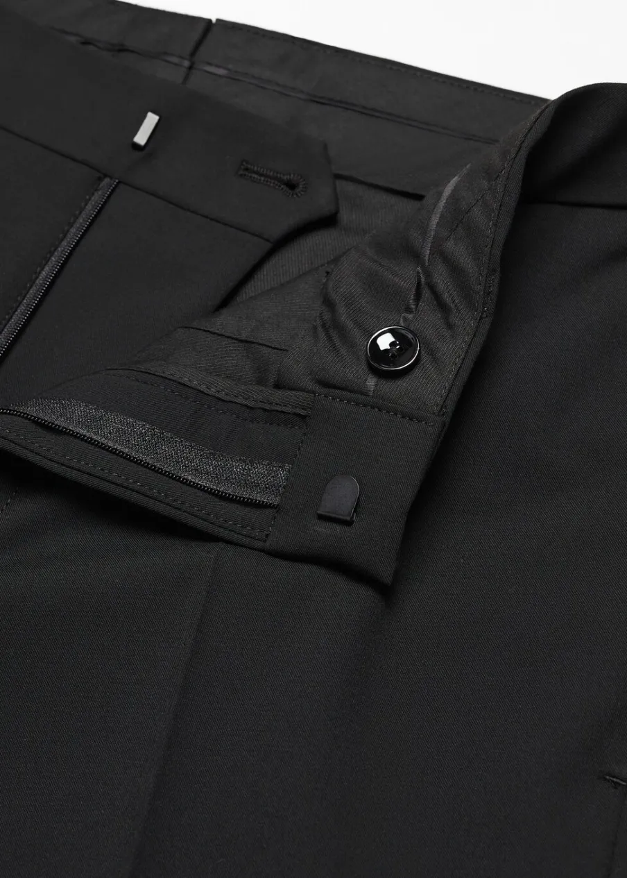 Comfort stretch: elastyczna tkanina dla większego komfortu. Wykonano z poliestru z recyklingu: wytrzymałego, oddychającego i łatwego w pielęgnacji materiału, dzięki czemu ubranie jest wygodne w użytkowaniu. Super slim-fit. Zaszewki z przodu i z tyłu. Kryte zapięcie na guzik, haftkę i suwak. Szlufki na pasek. Dwie kieszenie boczne. Kieszonka na monety na wysokości biodra. Dwie wpuszczane kieszenie z guzikiem z tyłu. Model ma 185 cm wzrostu i nosi rozmiar 42. Komfort: to ubranie zapewnia pełną swobodę ruchu i odzyskuje swój pierwotny kształt.