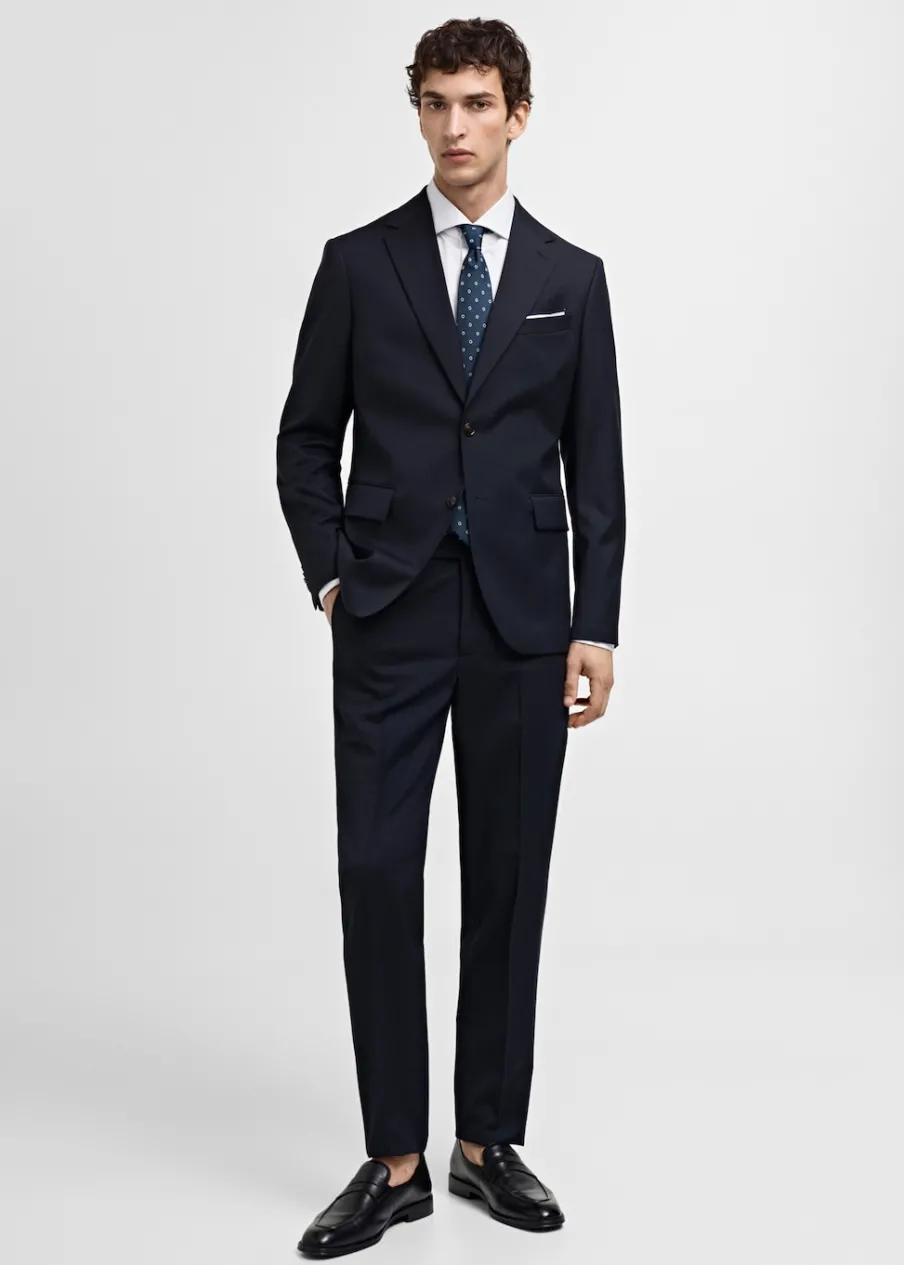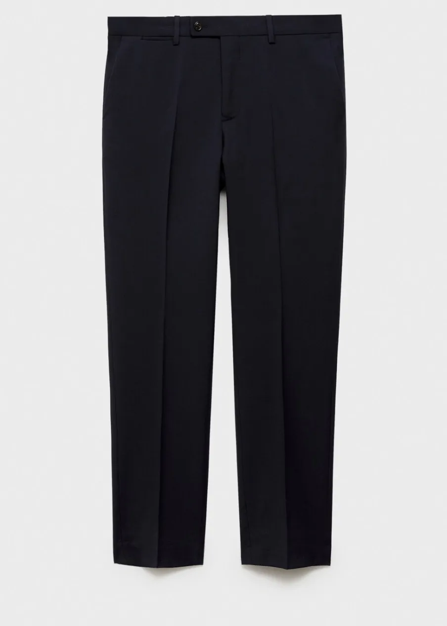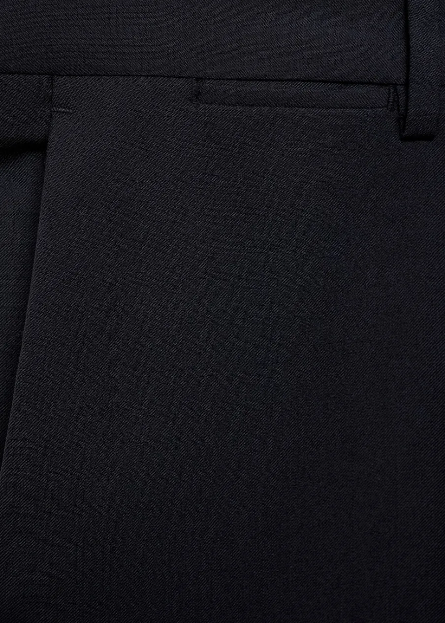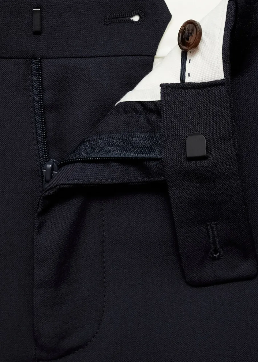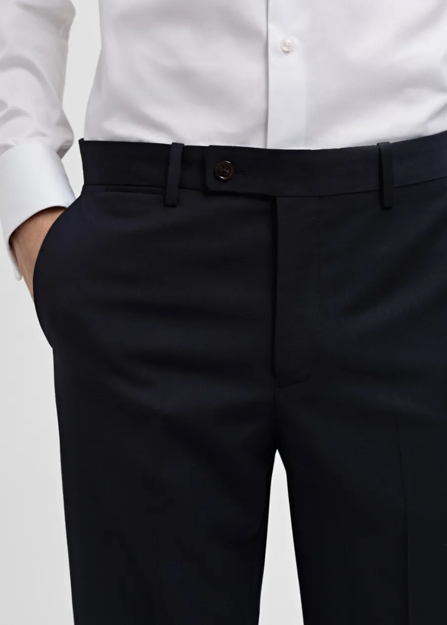ESSENTIALS: Made to last. Slim-fit. Tkanina z 100% wełny dziewiczej. Szlufki na pasek. Zapięcie na zamek, haftkę i dwa guziki z przodu. Dwie kieszenie z przodu. Ukryta kieszonka na monety na wysokości biodra. Dwie wpuszczane kieszenie z guzikiem z tyłu. Model ma 187 cm wzrostu i nosi rozmiar 42. Zaprasowany kant z przodu i z tyłu.