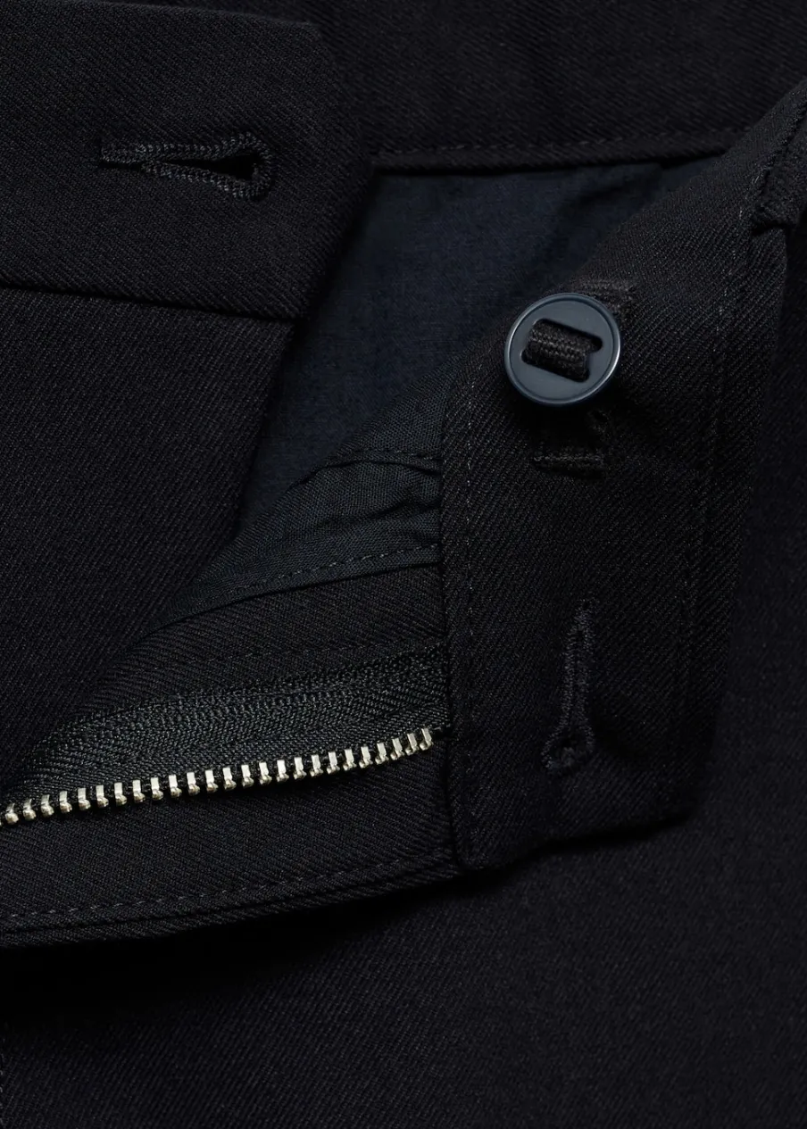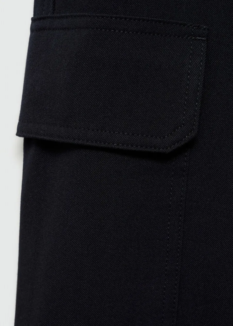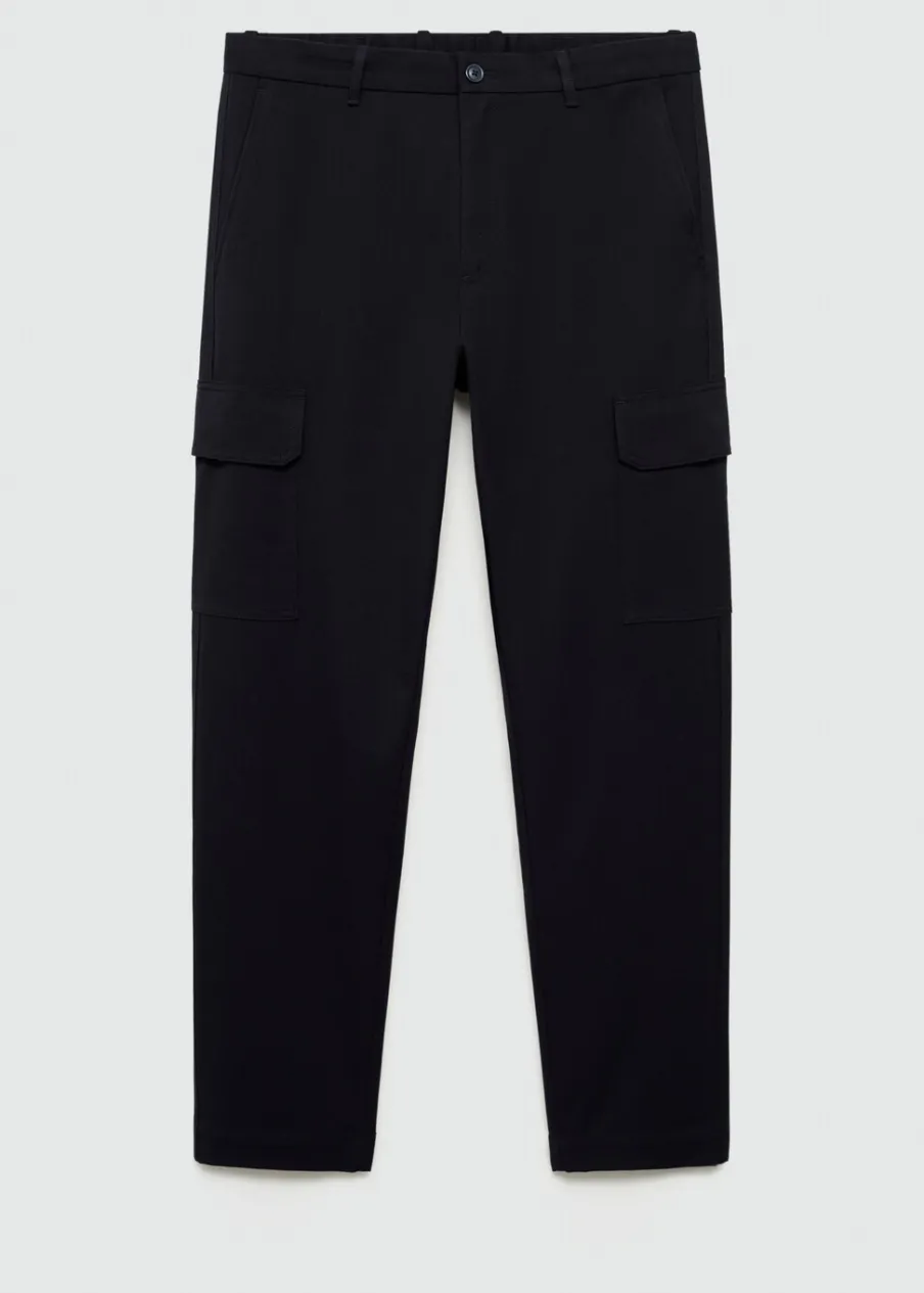 Fason cargo. Tkanina o skośnym splocie. Krój regular. Średni stan. Podwójne zapięcie na guzik i zamek. Szlufki na pasek. Dwie kieszenie z przodu. Dwie naszywane kieszenie z patką na nogawce. Dwie wpuszczane kieszenie z guzikiem z tyłu. Model ma 190 cm wzrostu i nosi rozmiar 42.