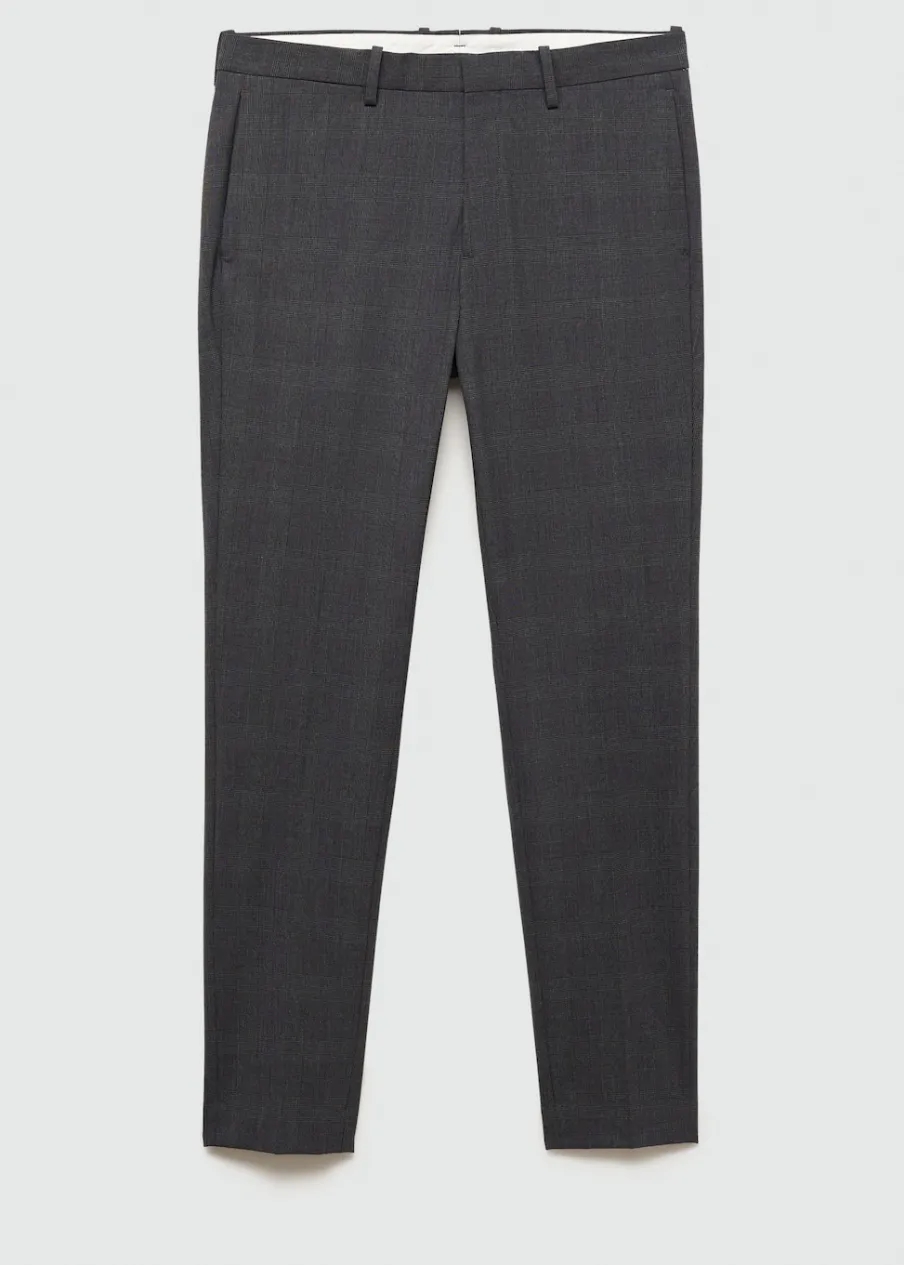 Super slim-fit. Comfort stretch: elastyczna tkanina dla większego komfortu. Wykonano z poliestru z recyklingu: wytrzymałego, oddychającego i łatwego w pielęgnacji materiału, dzięki czemu ubranie jest wygodne w użytkowaniu. Wzór w kratę Księcia Walii. Średni stan. Kryte zapięcie na guzik, haftkę i suwak. Szlufki na pasek. Dwie kieszenie boczne. Ukryta kieszonka na monety na wysokości biodra. Dwie wpuszczane kieszenie z guzikiem z tyłu. Model ma 185 cm wzrostu i nosi rozmiar 42. Zaprasowany kant z przodu i z tyłu. Komfort: to ubranie zapewnia pełną swobodę ruchu i odzyskuje swój pierwotny kształt.