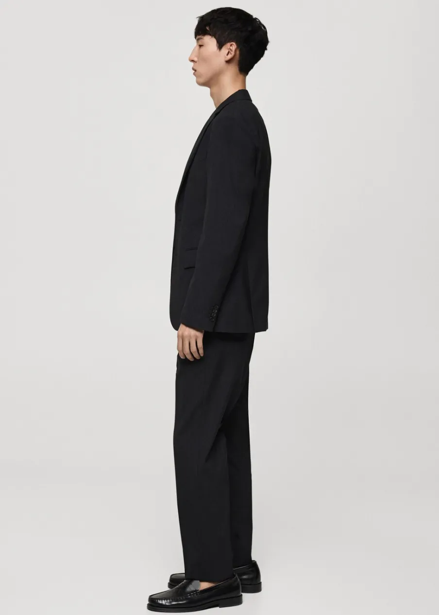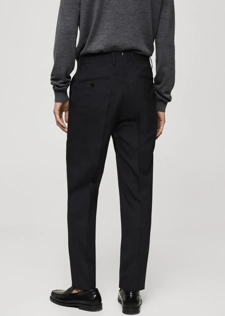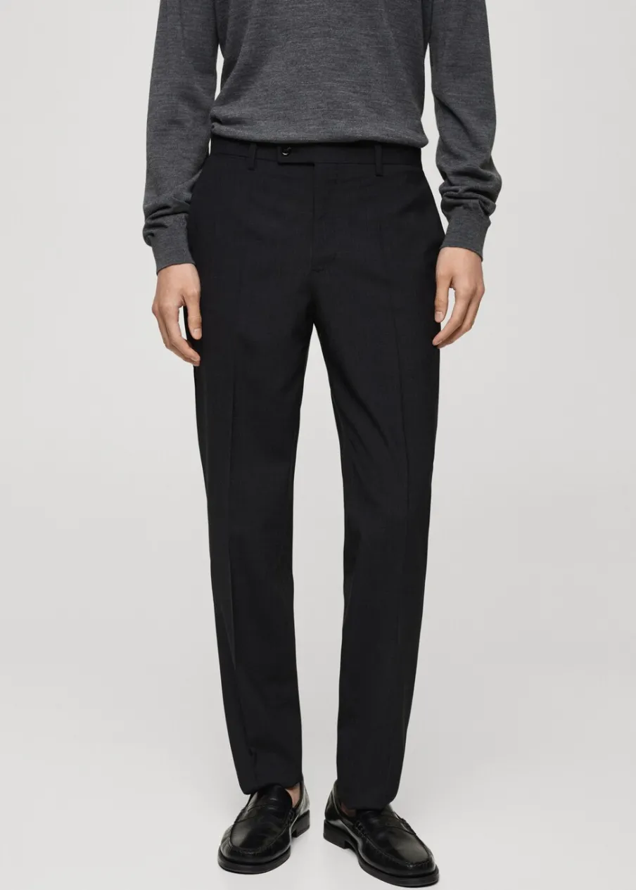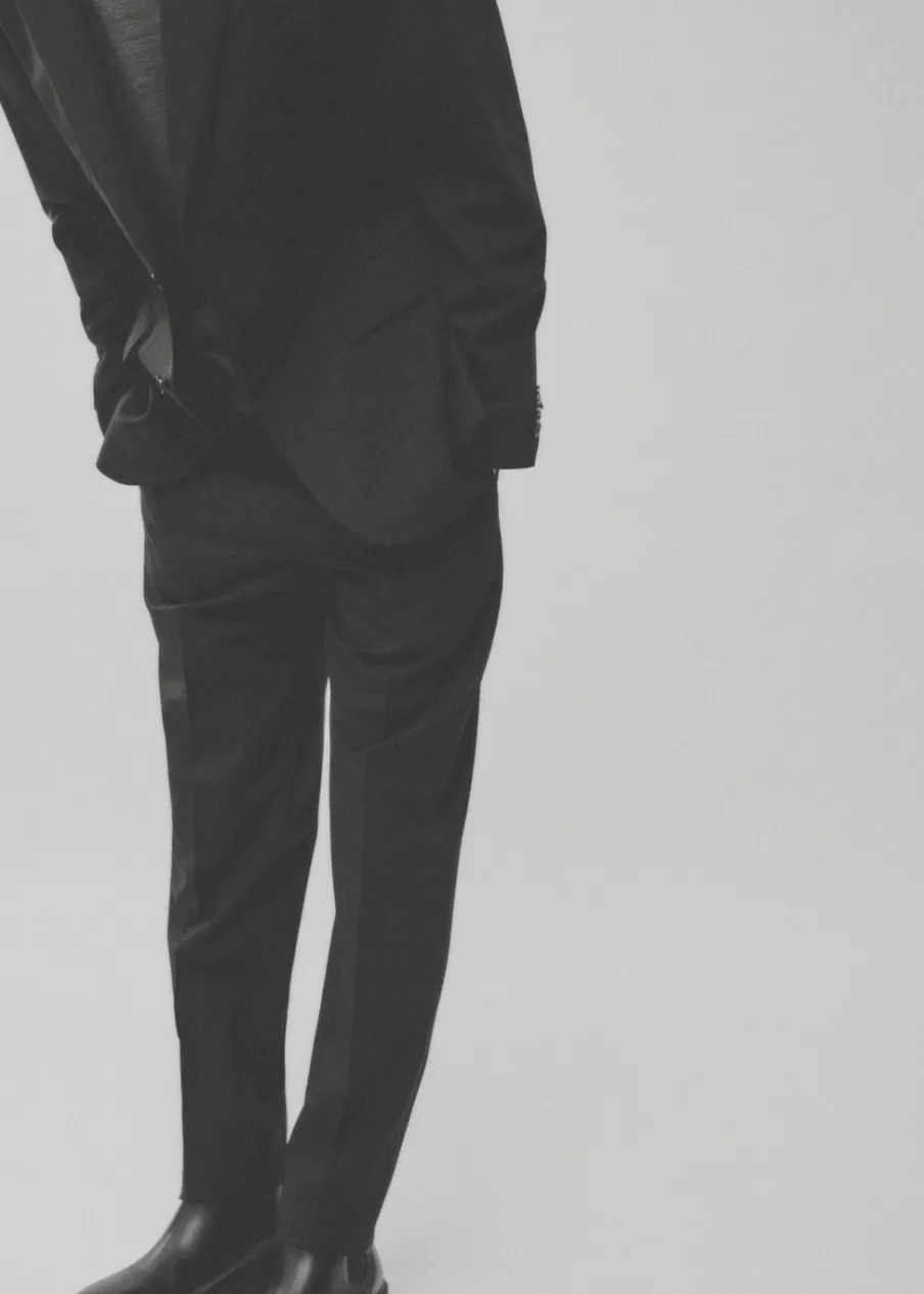 ESSENTIALS: Made to last. Tkanina z 100% wełny dziewiczej. Slim-fit. Średni stan. Zapięcie na zamek i guziki z przodu. Szlufki na pasek. Dwie kieszenie z przodu. Dwie wpuszczane kieszenie z guzikiem z tyłu. Model ma 190 cm wzrostu i nosi rozmiar 42. Termoregulacyjna: ta tkanina zapewnia optymalną przepuszczalność powietrza, by utrzymać stałą temperaturę ciała. Zaprasowany kant z przodu i z tyłu.
