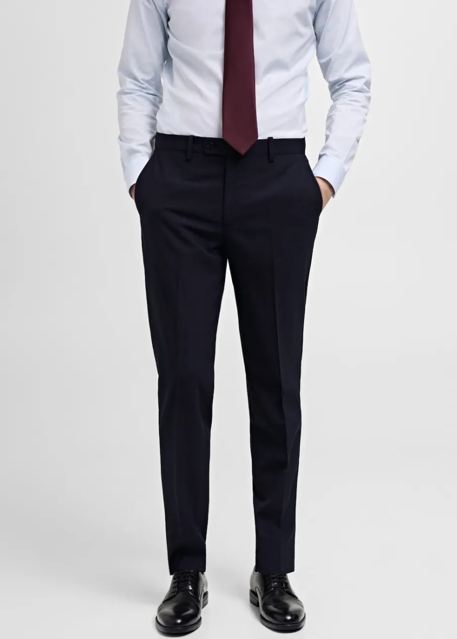 ESSENTIALS: Made to last. Slim-fit. 100% wełna. Zaprasowany kant. Zapięcie na zamek, haftkę i dwa guziki z przodu. Szlufki na pasek. Dwie kieszenie boczne. Kieszeń na bilon. Dwie wpuszczane kieszenie z tyłu. Model ma 185 cm wzrostu i nosi rozmiar 42.