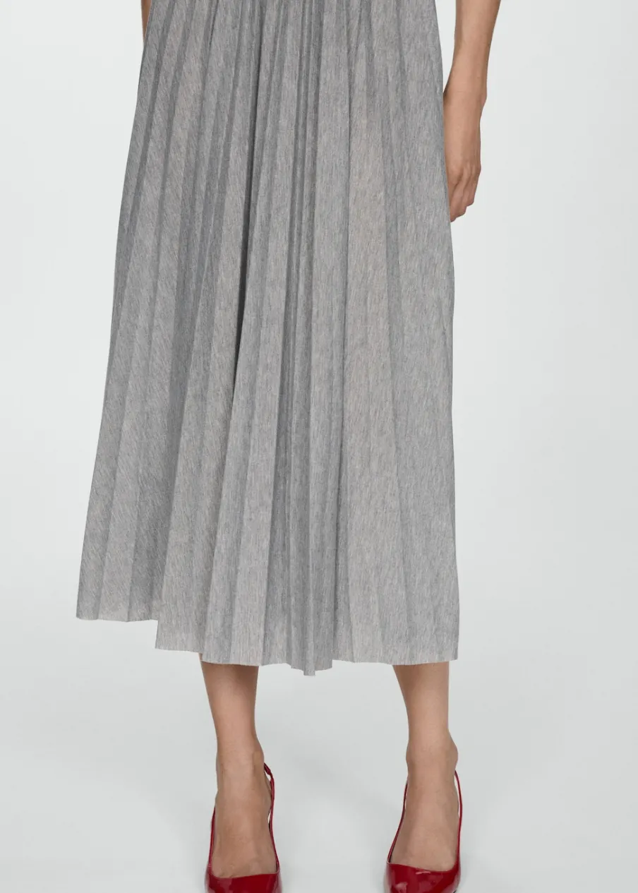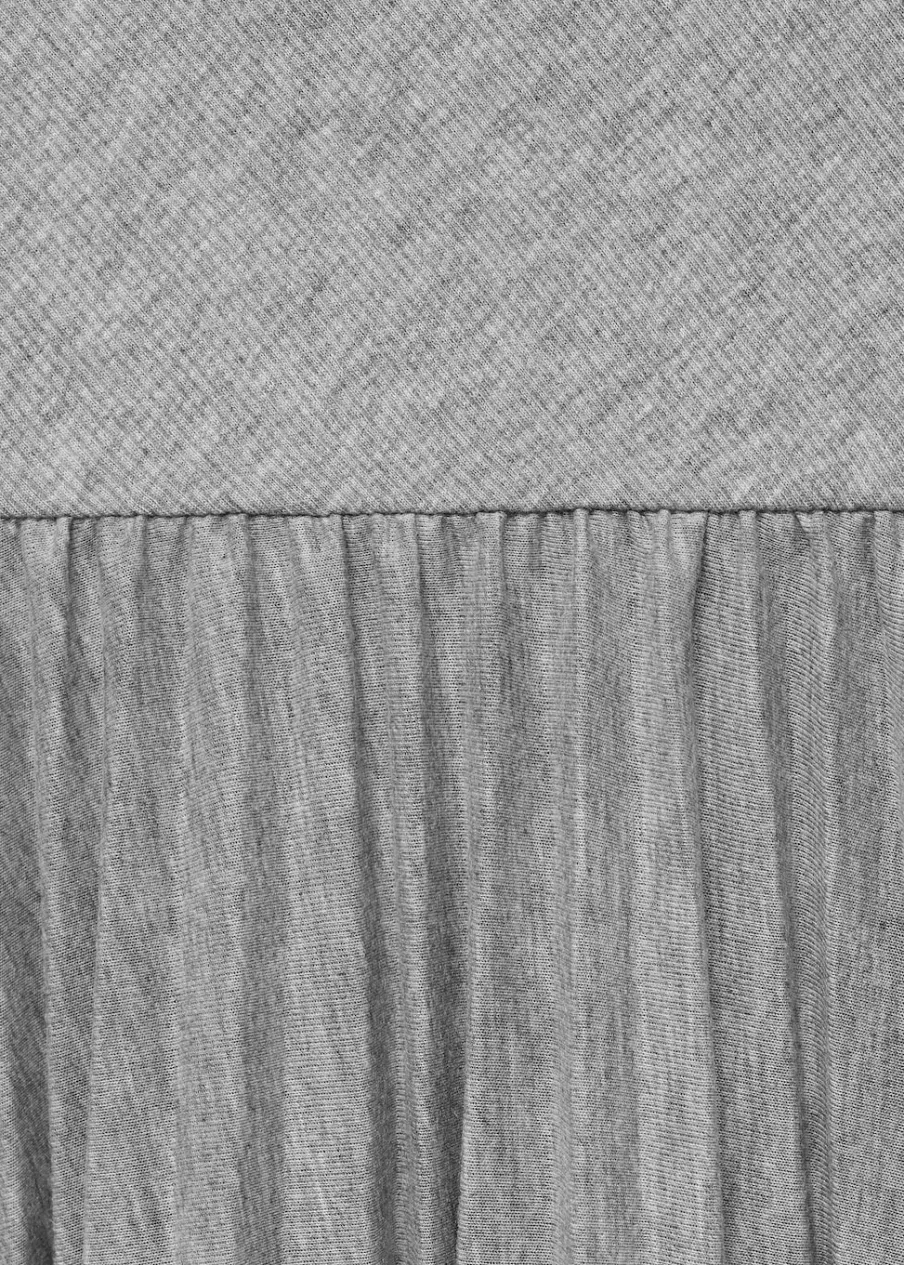 OpisLejąca tkanina. Model długi. Plisowanie. Okrągły dekolt. Bez rękawów.