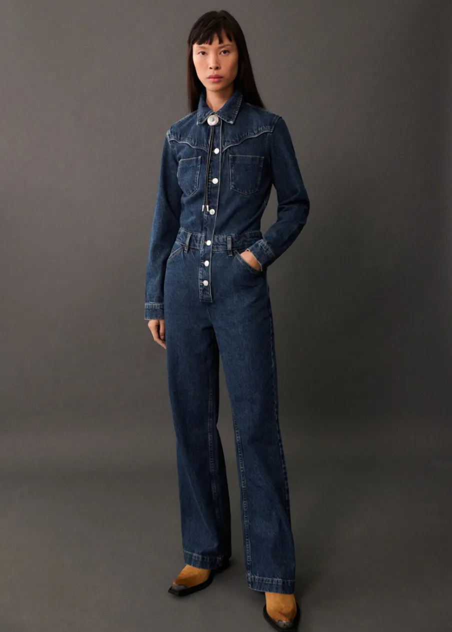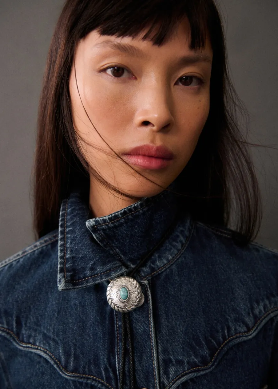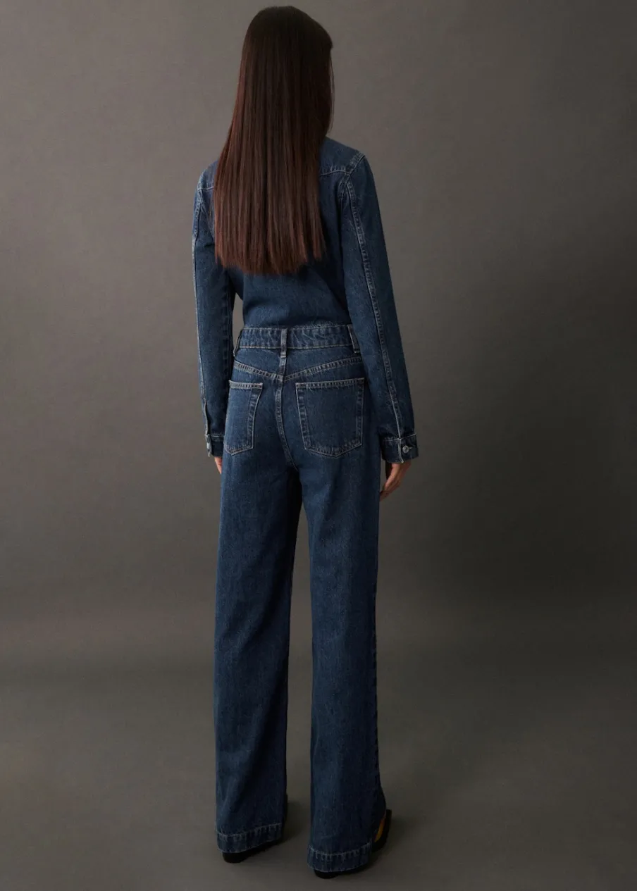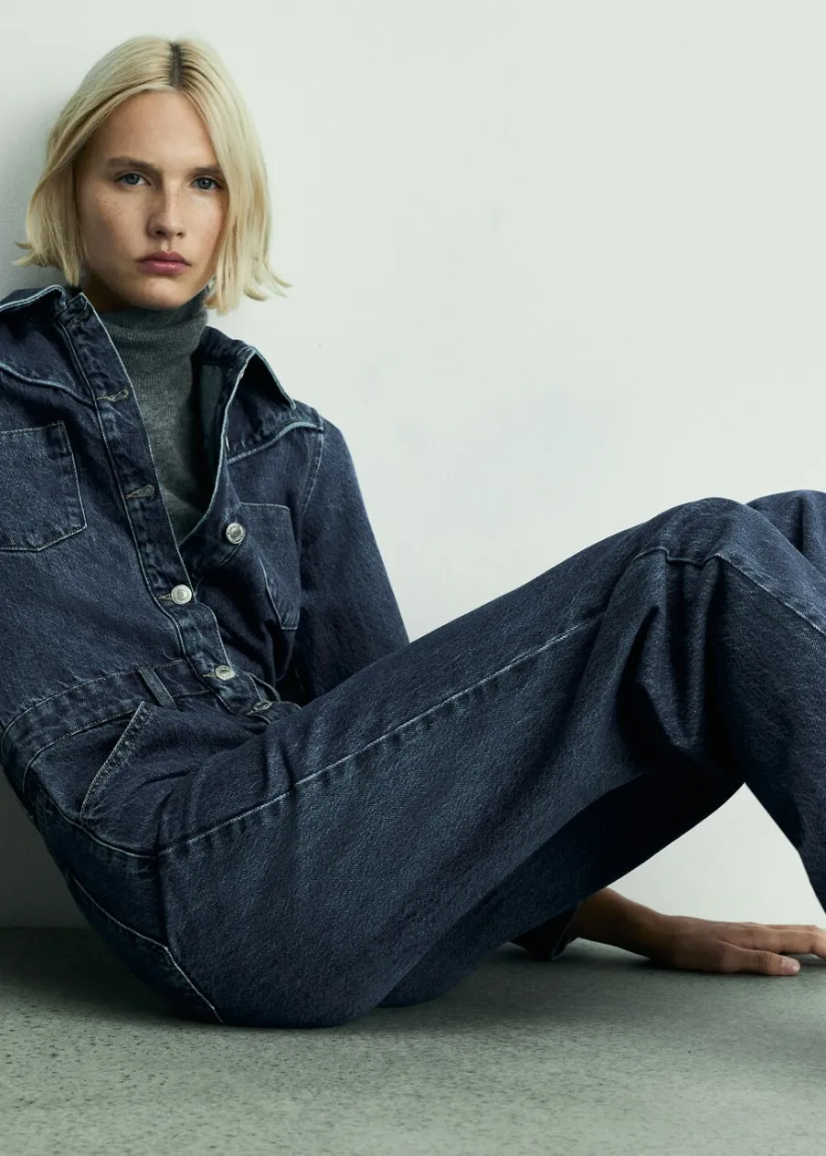 Tkanina bawełniana w dżinsowym stylu. Model długi. Model prosty. Koszulowy kołnierz. Długi rękaw z guzikami na mankietach. Dwie kieszenie naszyte na piersi. Dwie kieszenie boczne. Dwie kieszenie na guzik z tyłu. Szlufki. Zapięcie na guziki z przodu. Modelka ma 177 cm wzrostu i nosi rozmiar S/36.