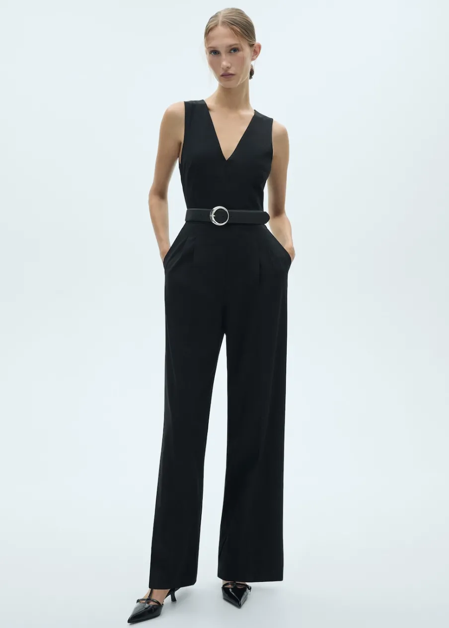 Lejąca tkanina. Model prosty. Model długi. Dekolt V. Bez rękawów. Szerokie ramiączka. Dwie kieszenie boczne. Szlufki. Zapięcie z tyłu na kryty suwak. Regulowany pasek.