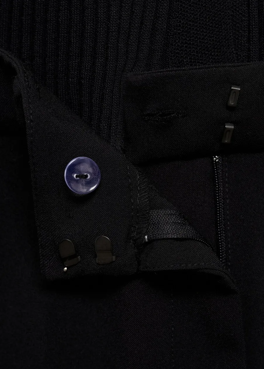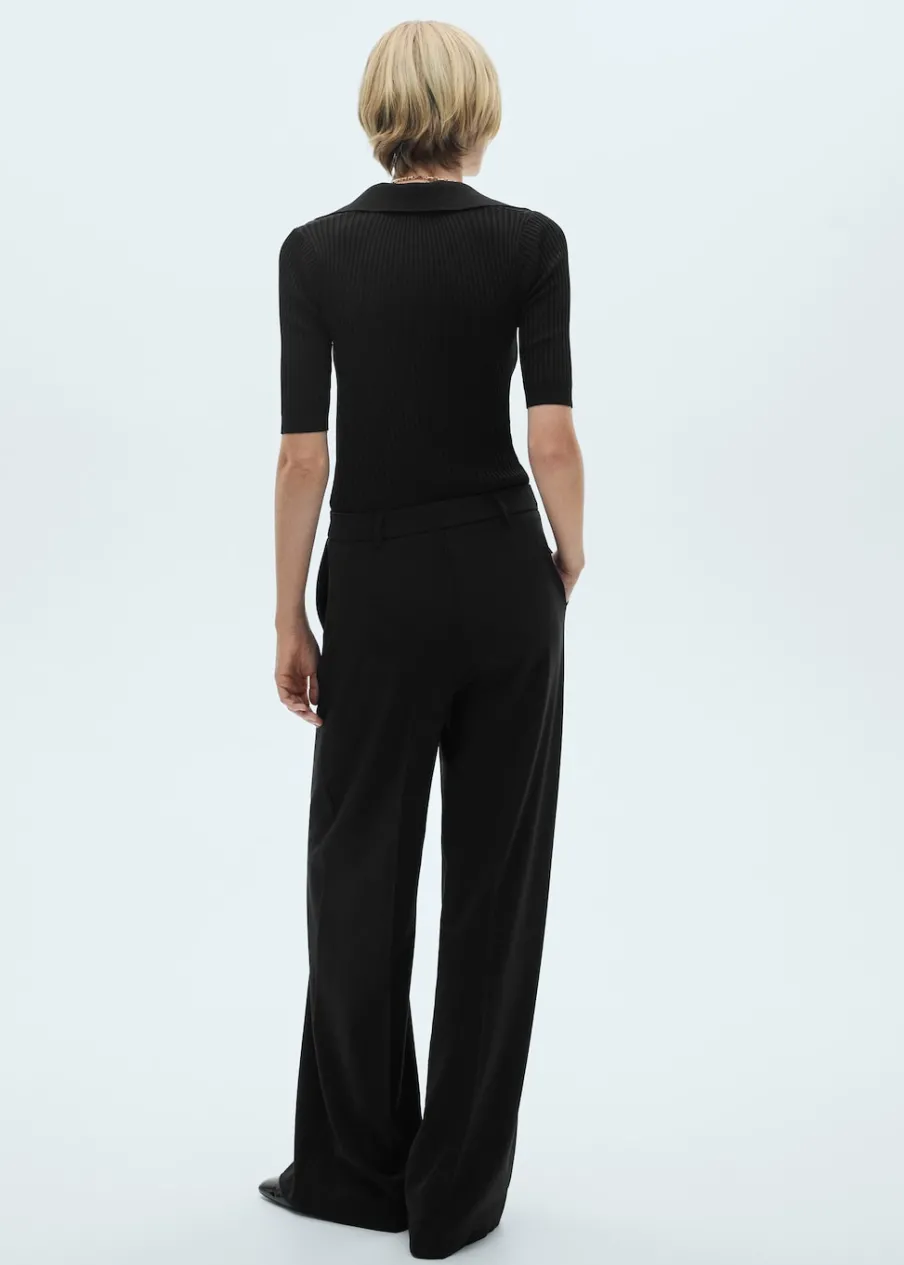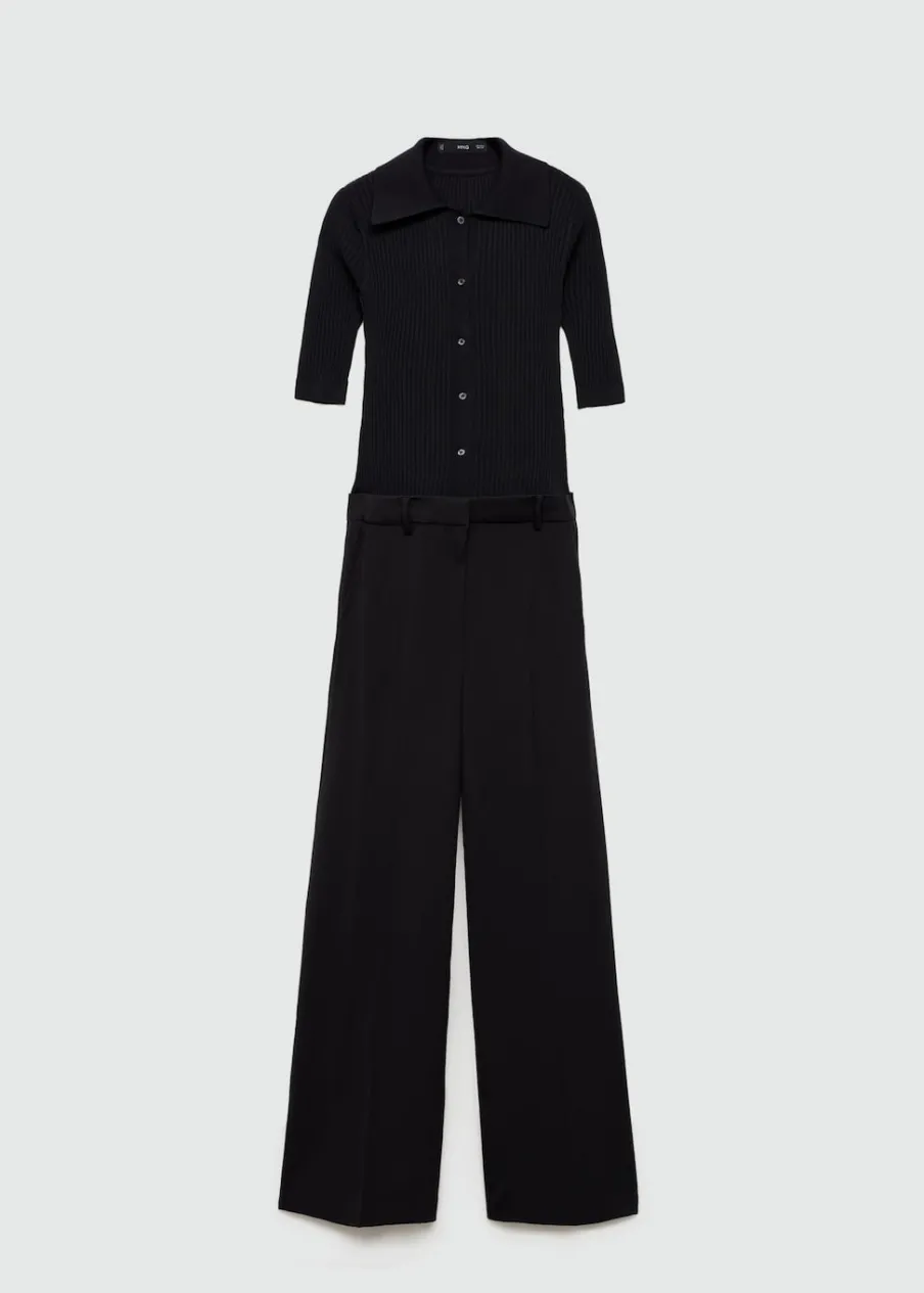 Dzianinowa tkanina. Model łączony. Model długi. Model wcięty. Kołnierzyk polo. Krótki rękaw. Szlufki. Kieszenie boczne. Zapięcie z przodu na guziki. Modelka ma 181 cm wzrostu i nosi rozmiar S/36.