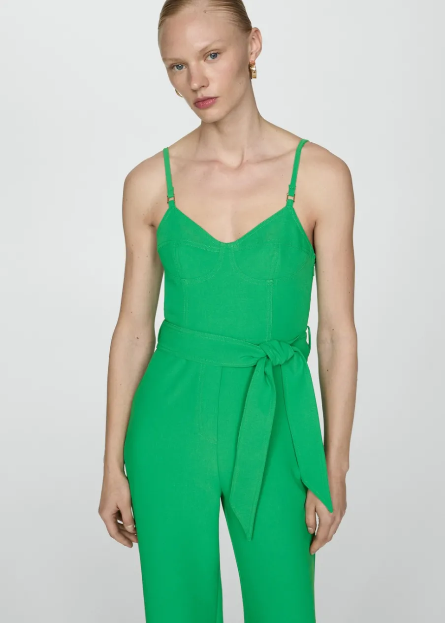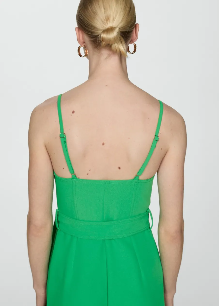 Lejąca tkanina. Model długi. Model prosty. Dekolt V. Bez rękawów. Cienkie, regulowane ramiączka. Kryte zapięcie na zamek z boku. Ozdobna kokardka. Kolekcja wizytowa.