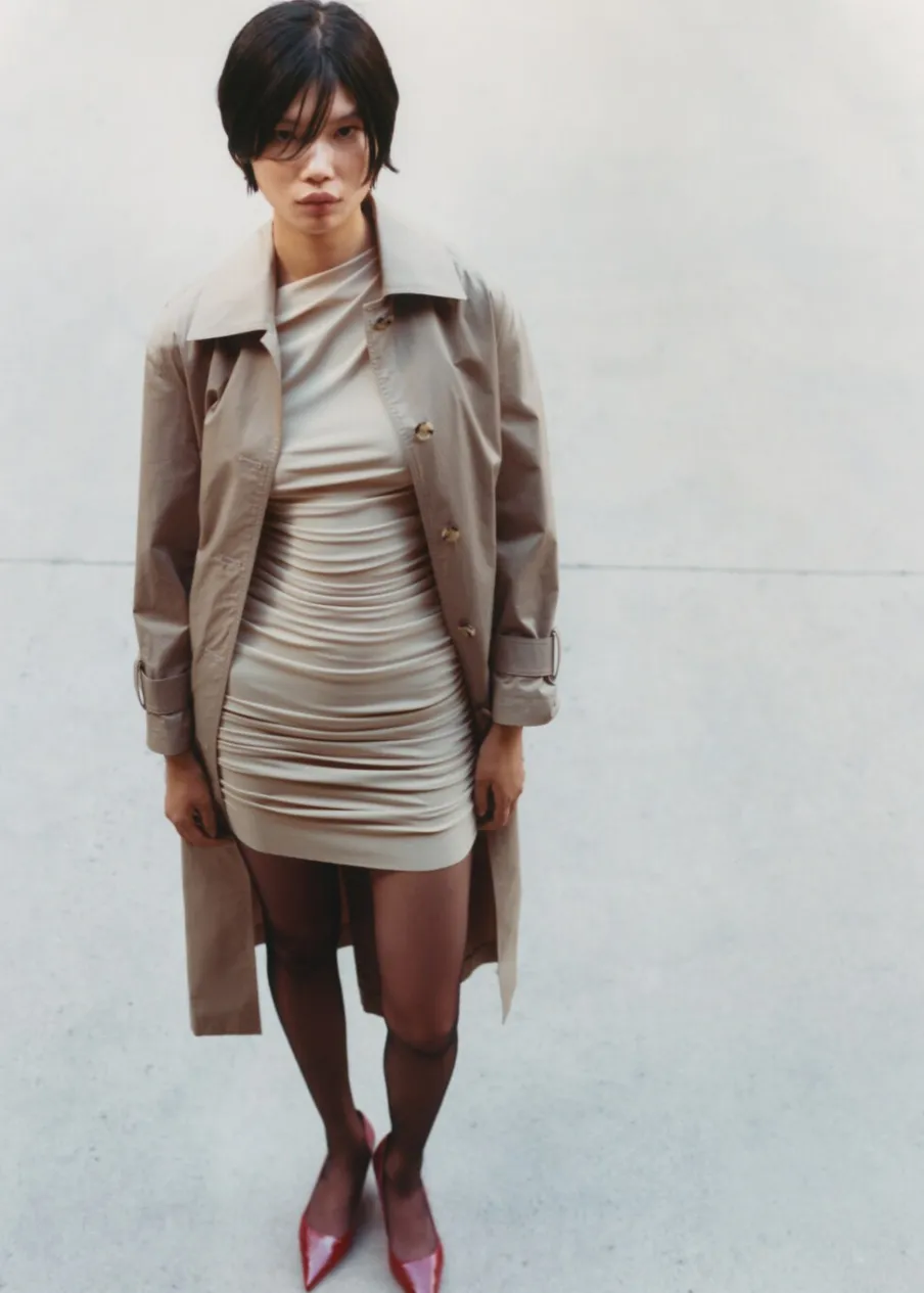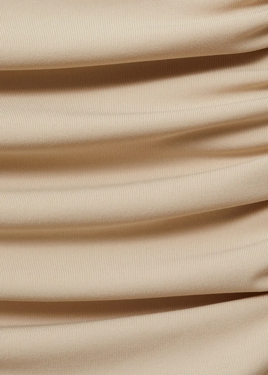 Elastyczna tkanina. Krótki krój. Model wcięty. Asymetryczny dekolt. Krótki rękaw. Bez zapięcia. Marszczona tekstura. Modelka ma 180 cm wzrostu i nosi rozmiar S. Modelka ma 178 cm wzrostu i nosi rozmiar S/36.
