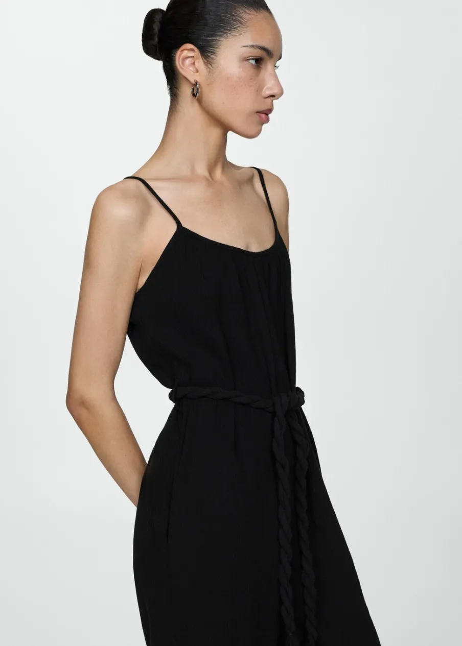 OpisModel prosty. Model długi. Okrągły dekolt. Bez rękawów. Cienkie ramiączka. Szlufki. Ozdobny sznurek. Dostępne…