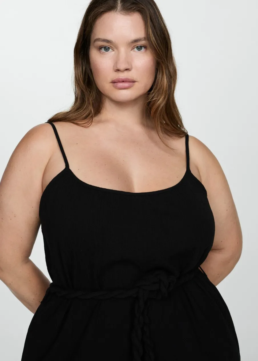 Model prosty. Model długi. Okrągły dekolt. Bez rękawów. Cienkie ramiączka. Szlufki. Ozdobny sznurek. Dostępne w Plus Size. Tkanina z 100% bawełny.
