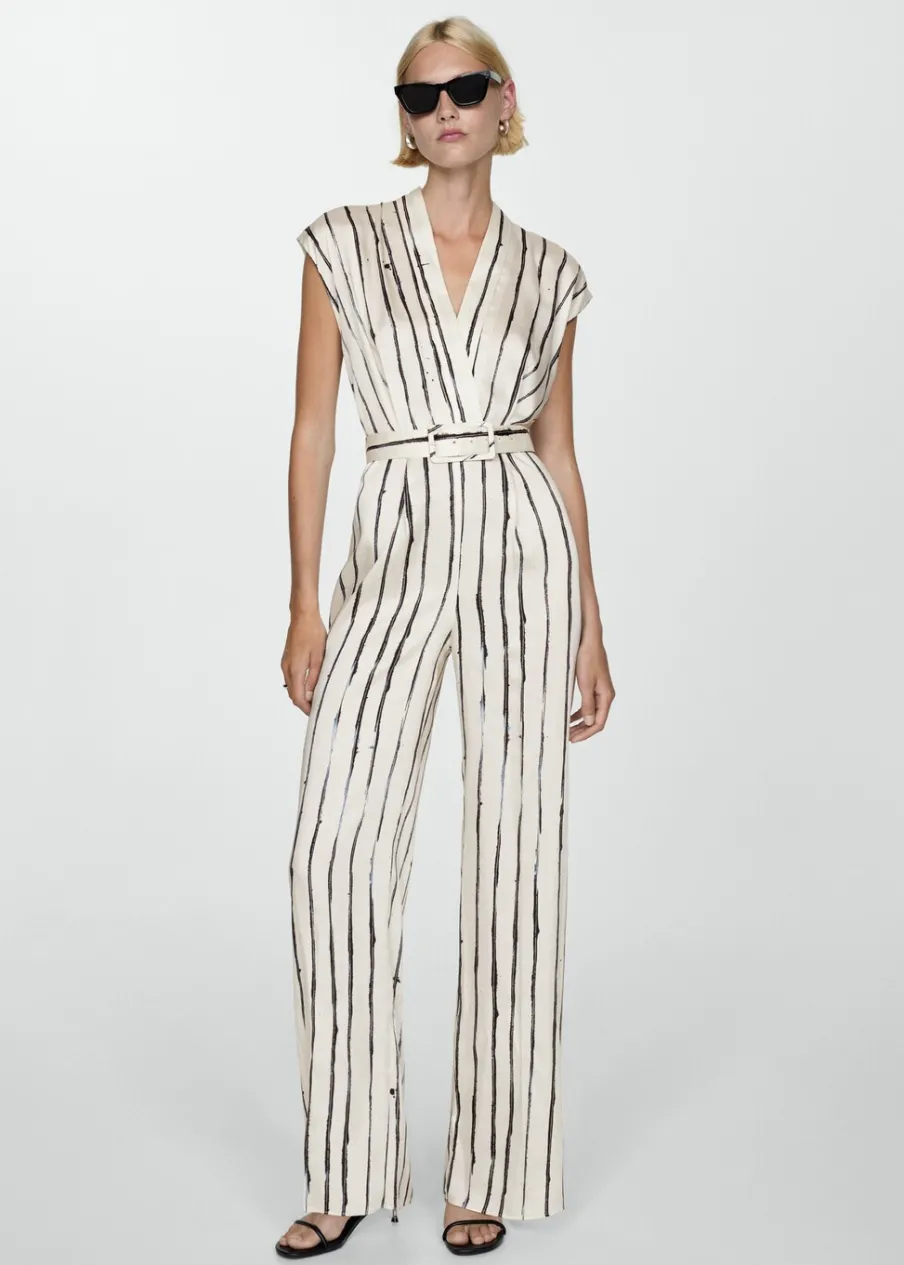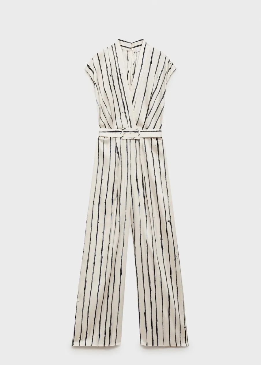 Satynowa tkanina. Lejąca tkanina. Model długi. Model prosty. Struktura w pasy. Zakładany dekolt V. Bez rękawów. Odpinany pasek. Szlufki. Zapięcie z tyłu na kryty suwak.