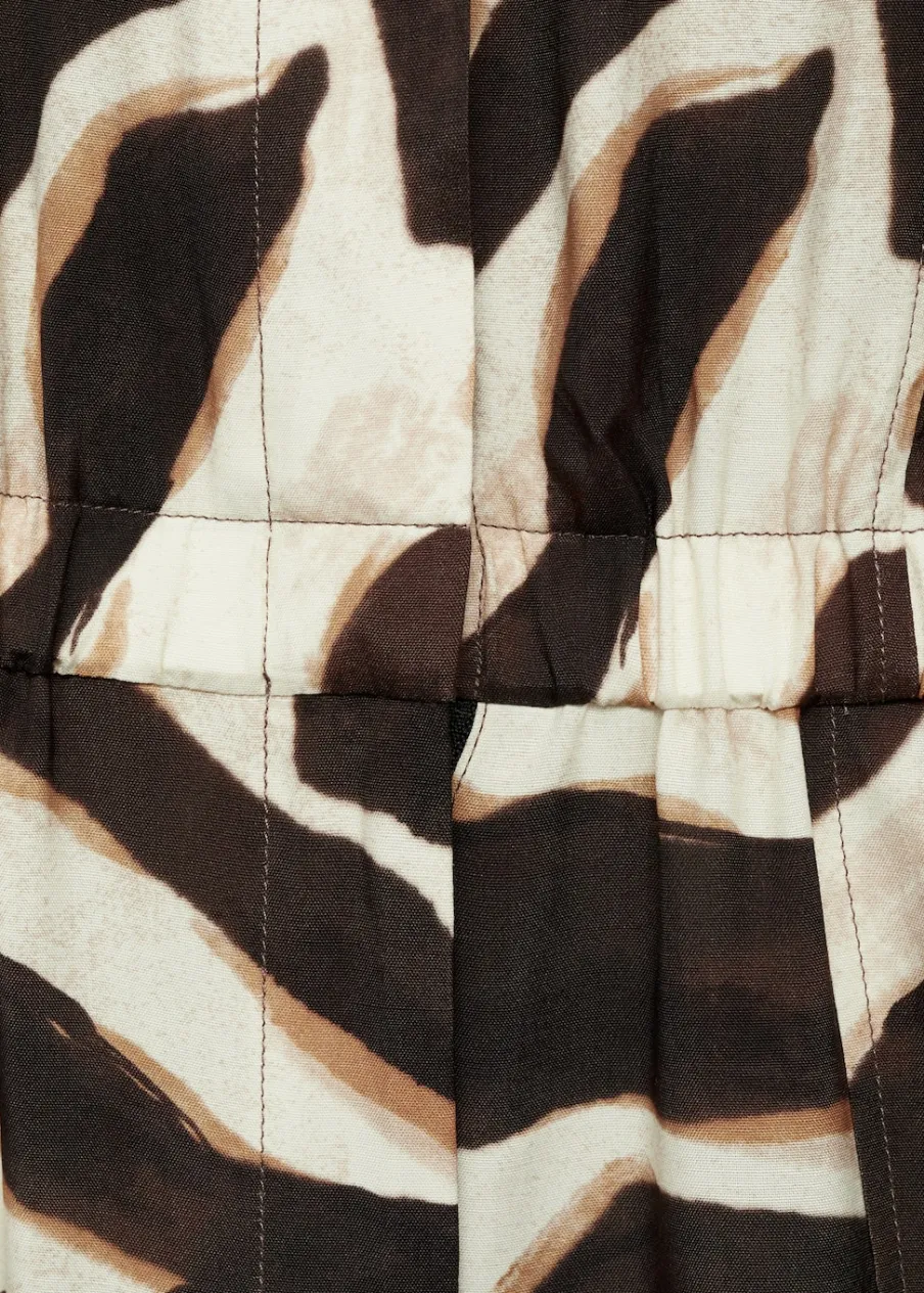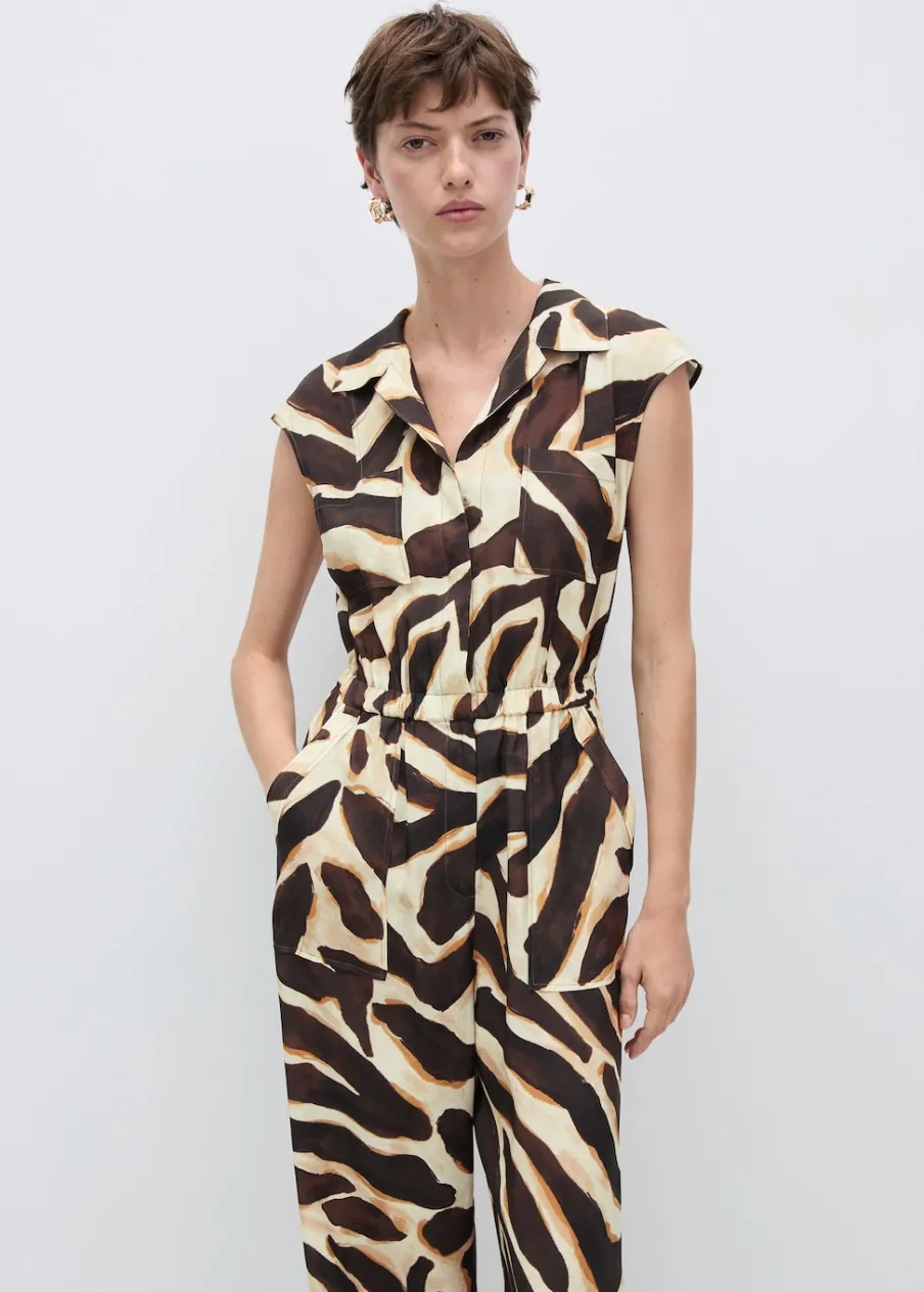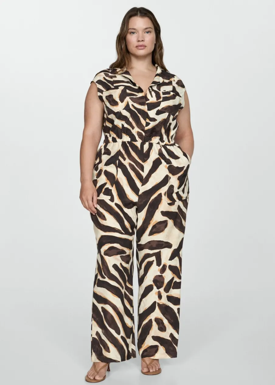 Lejąca tkanina. Model długi. Model prosty. Zwierzęcy wzór. Koszulowy kołnierz. Bez rękawów. Elastyczny pas. Dwie kieszenie nakładane z przodu. Dostępne w Plus Size. Kryte zapięcie na guziki z przodu. Modelka ma 176 cm wzrostu i nosi rozmiar S/36.