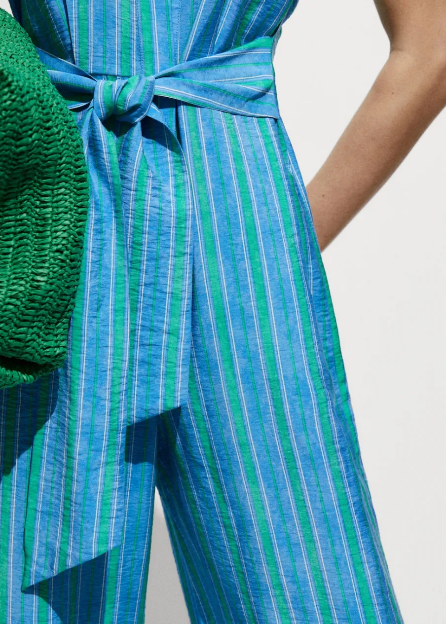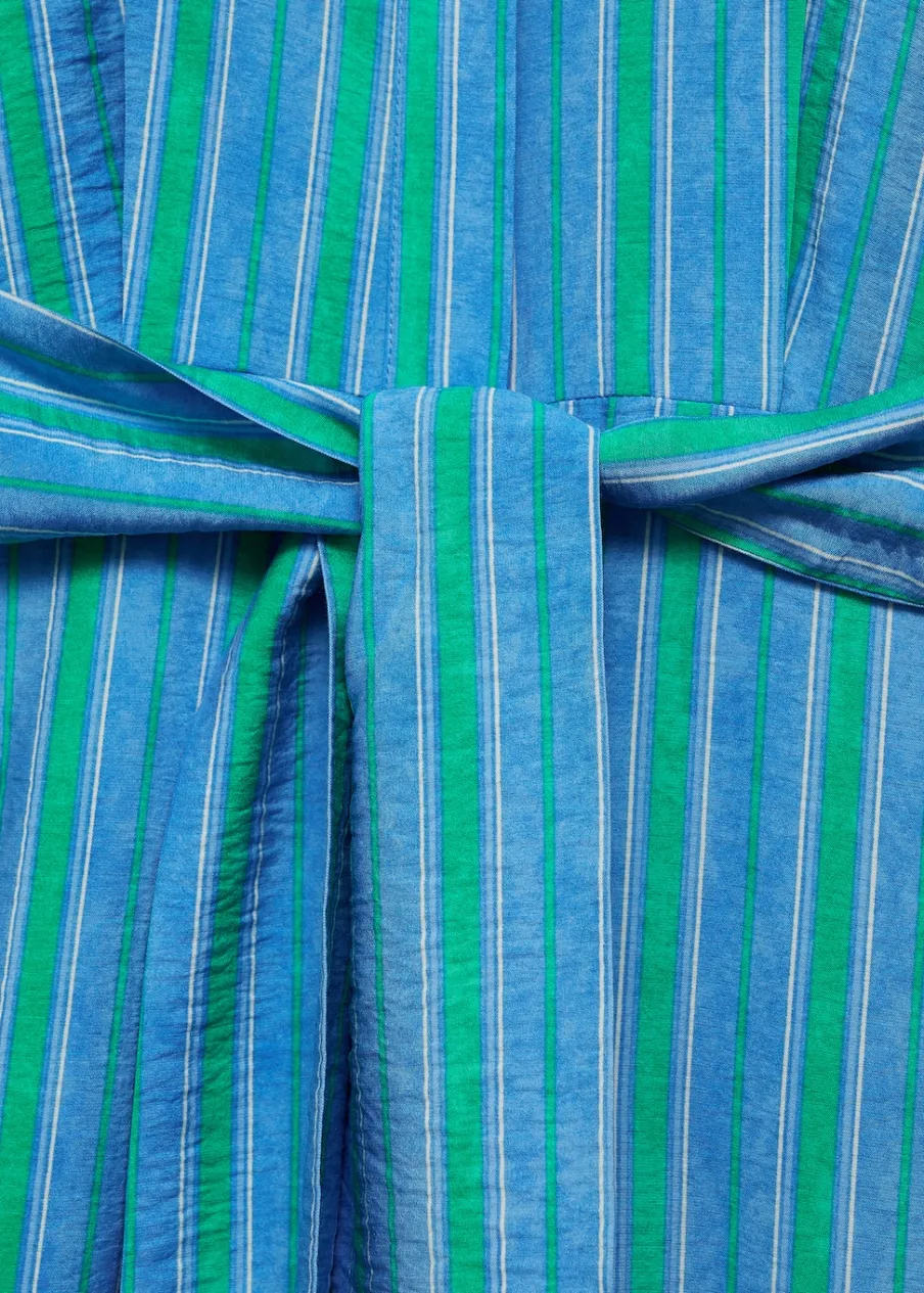 Lejąca tkanina. Model długi. Model prosty. Wzór w pasy. Koszulowy kołnierz. Krótki rękaw. Zapięcie na regulowane wiązanie. Dostępne w Plus Size. Sezon festiwalowy. Zapięcie na guziki z przodu.