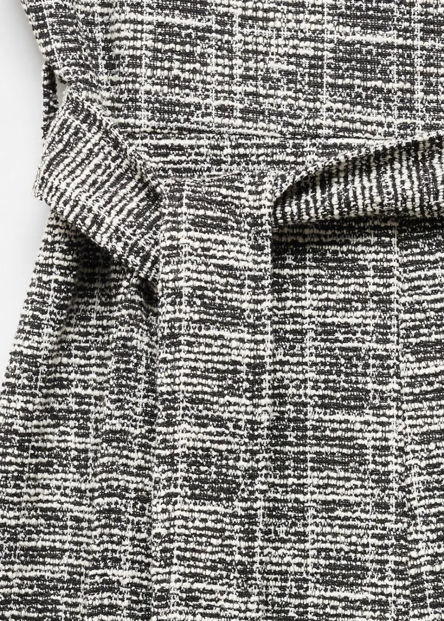 OpisTkanina mieszanka bawełny. Tkanina tweedowa. Model długi. Fason wideleg. Melanżowy wzór. Okrągły dekolt. Bez r…