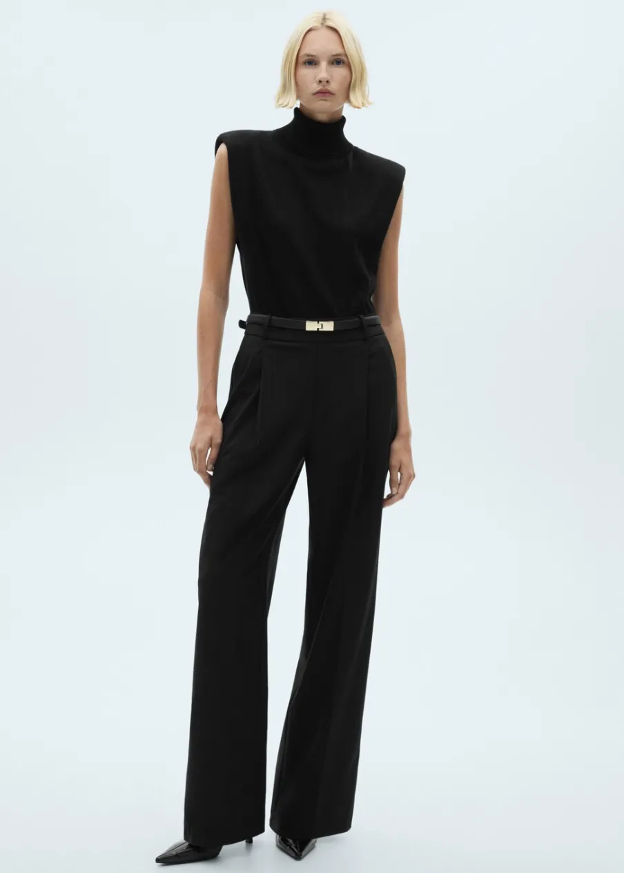 Tkanina z 100% bawełny. Model prosty. Model długi. Model łączony. Golf. Poduszki na ramionach. Bez rękawów. Kieszenie boczne. Dekoracyjny pasek. Modelka ma 178 cm wzrostu i nosi rozmiar S/36.