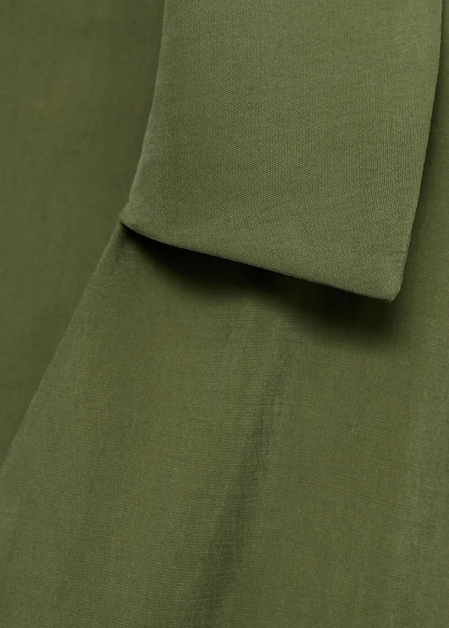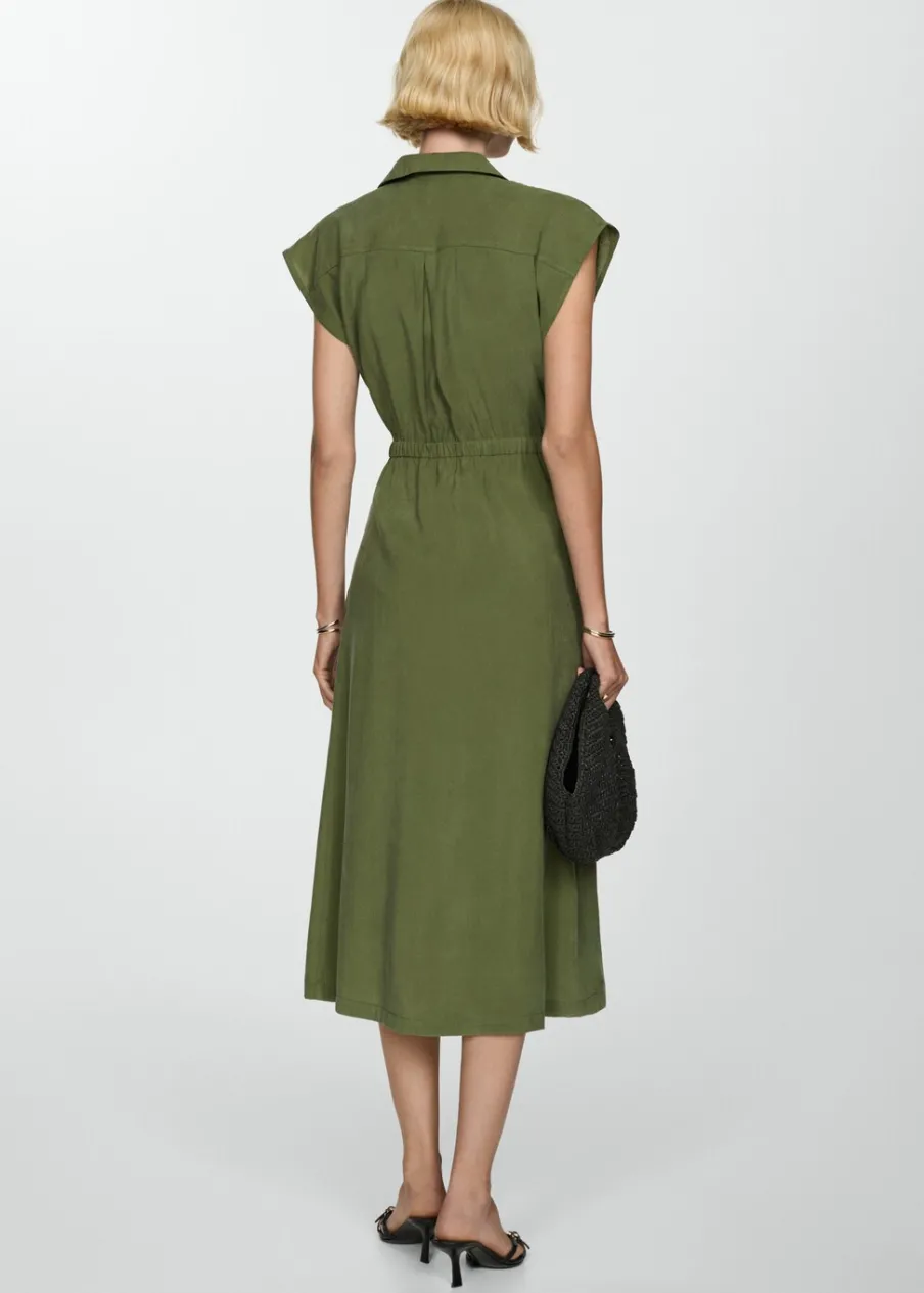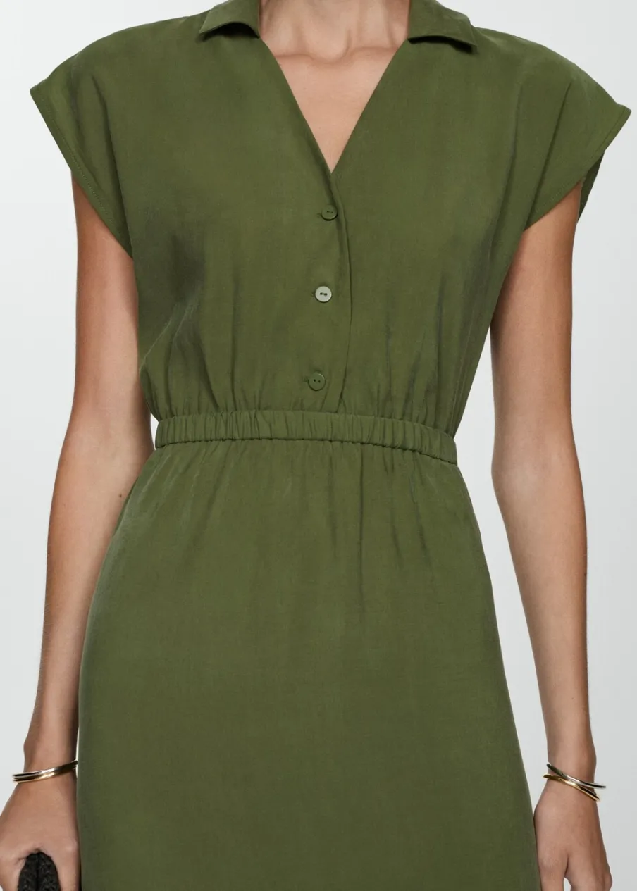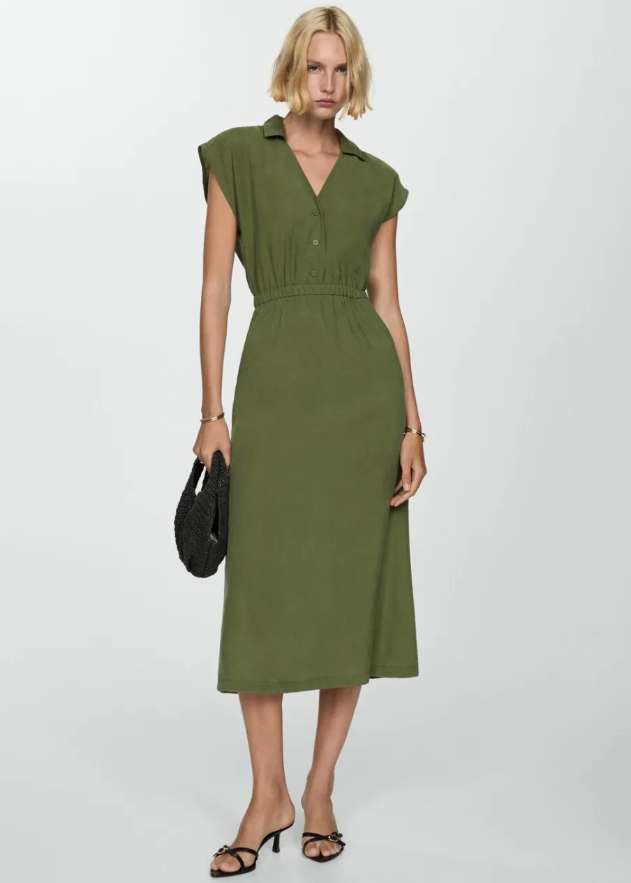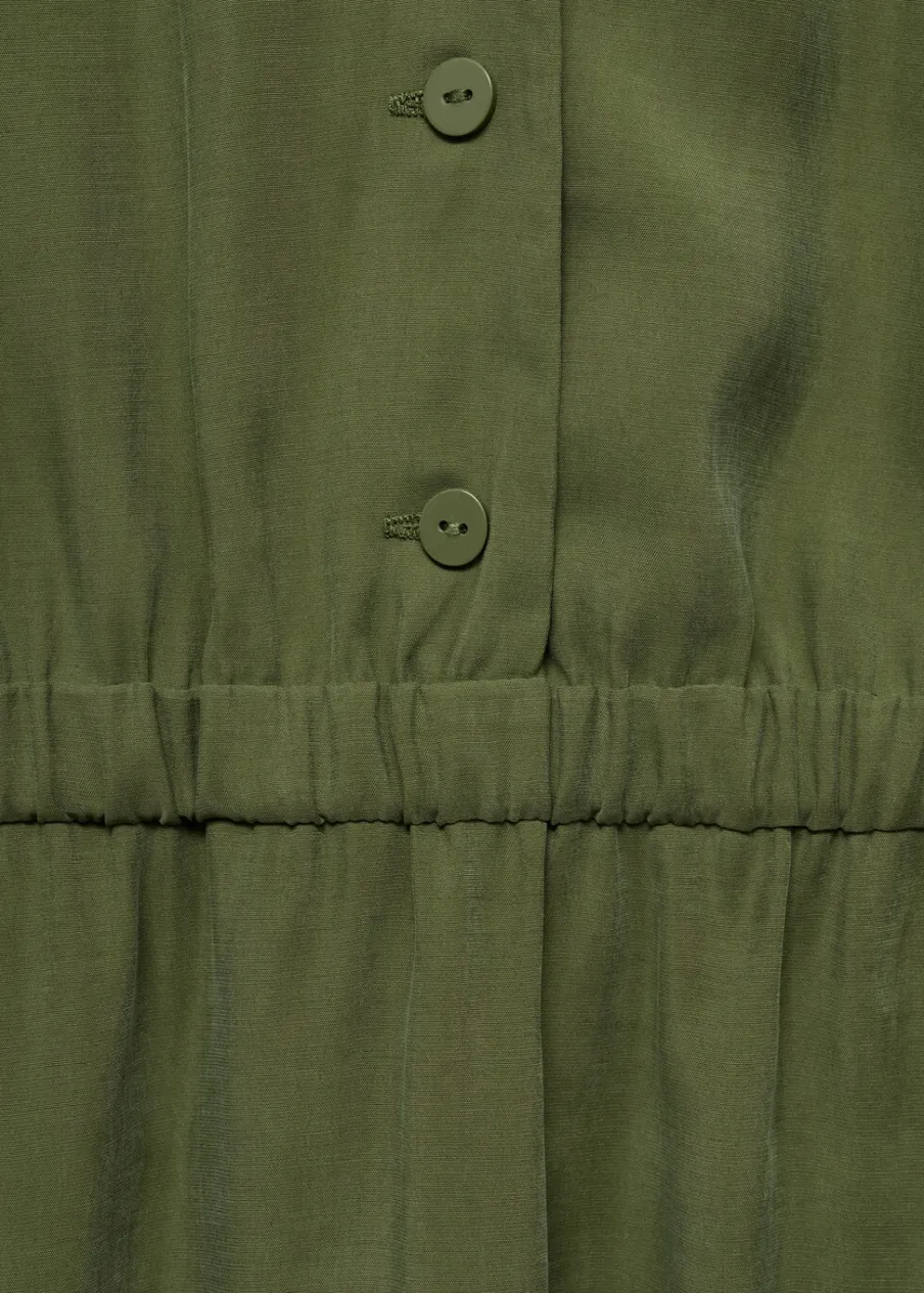 Tkanina z mieszanki modalu. Model prosty. Model długi. Kołnierzyk polo. Bez rękawów. Elastyczny pas. Zapięcie z przodu na guziki.