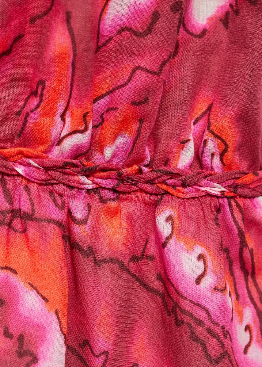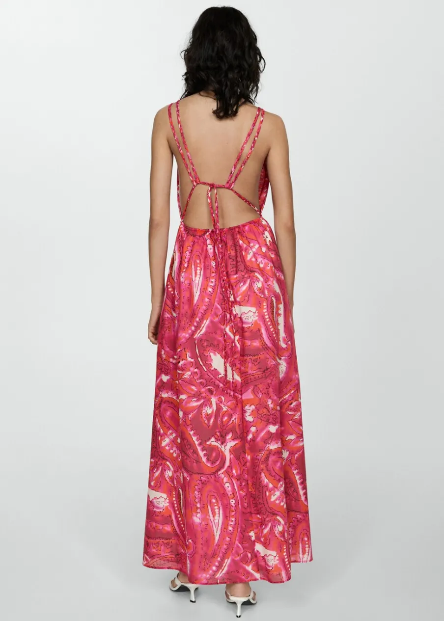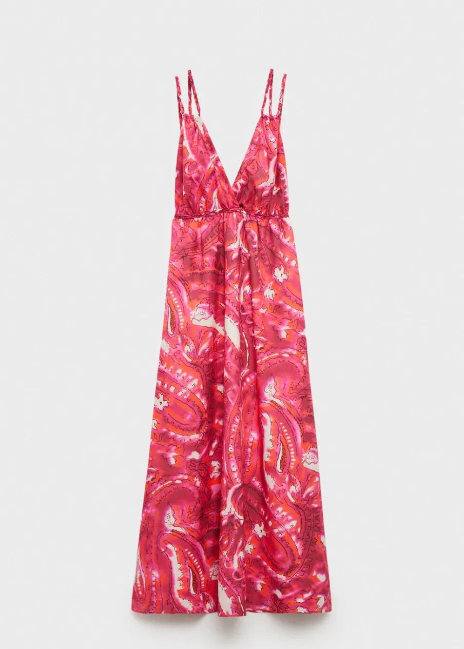 Model evasé. Model w dużym rozmiarze. Model długi. Dekolt V. Bez rękawów. Cienkie podwójne ramiączka. Wiązanie z tyłu. Tkanina z 100% bawełny. Nadruk.