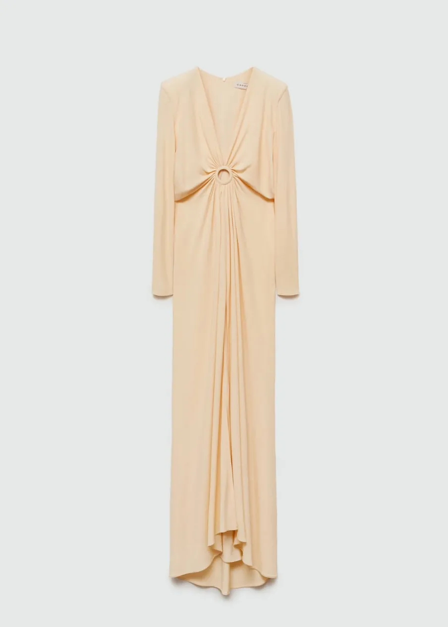 Elegancka, wyrafinowana i twarzowa – ta sukienka będzie trafionym wyborem na każdą imprezę w tym sezonie. Ma poduszki w ramionach i okrągłe wycięcie z marszczeniem. Lejąca tkanina. Model prosty. Model długi. Dekolt V. Długi rękaw. Zapięcie z tyłu na kryty suwak. Ozdobne kółko. Marszczona tekstura. Rozcięcie z przodu u dołu. Wyprodukowano w Portugalii. Kolekcja wizytowa. Artykuły z kolekcji CAPSULE można wymienić lub zwrócić w ciągu 14 dni od daty wysyłki.