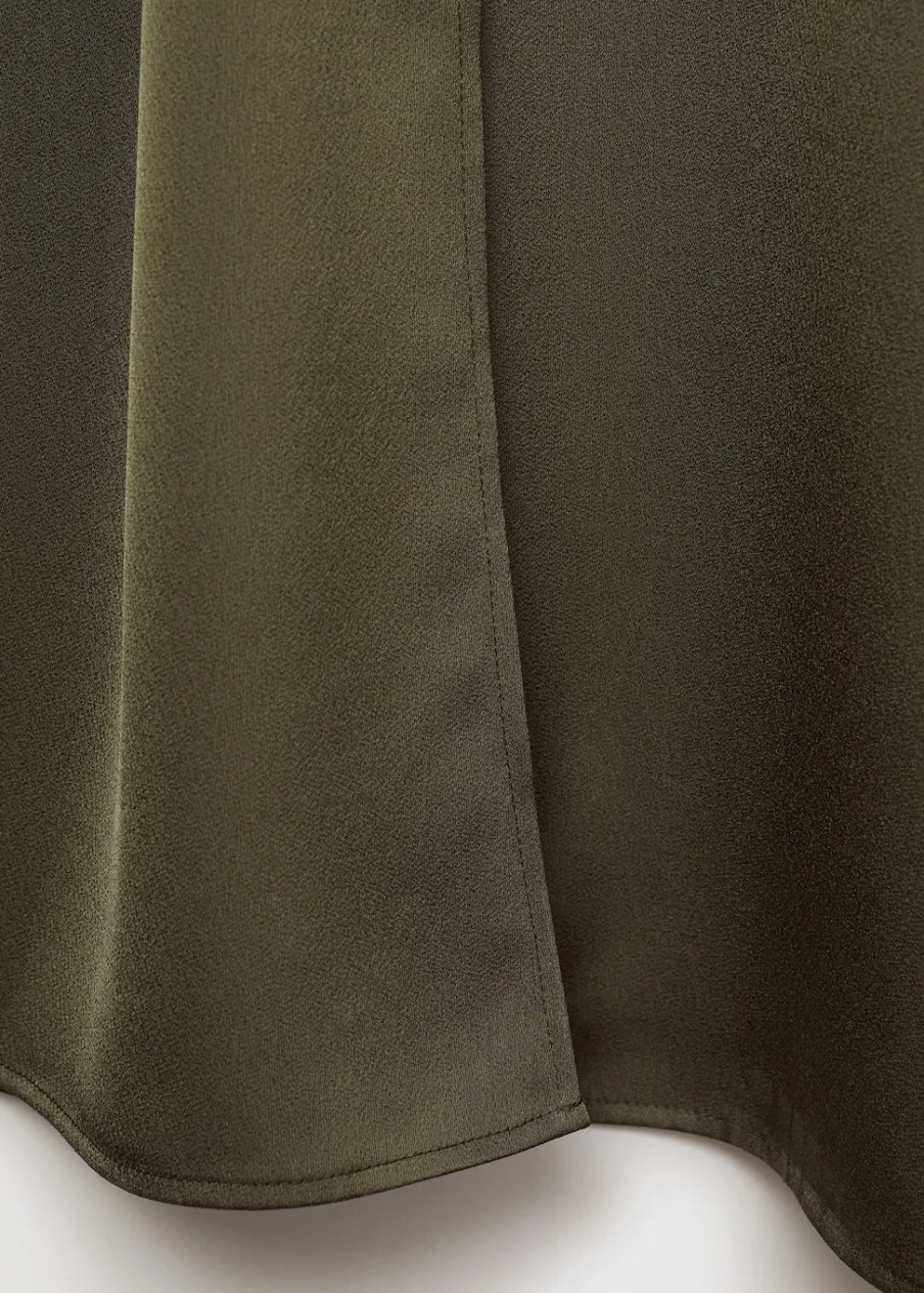 OpisTkanina lyocell. Cienka tkanina. Satynowy efekt. Zapięcie na zamek z boku. Model evasé. Krój do kolan. Dekolt w k…