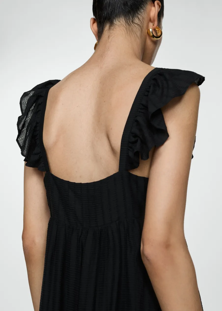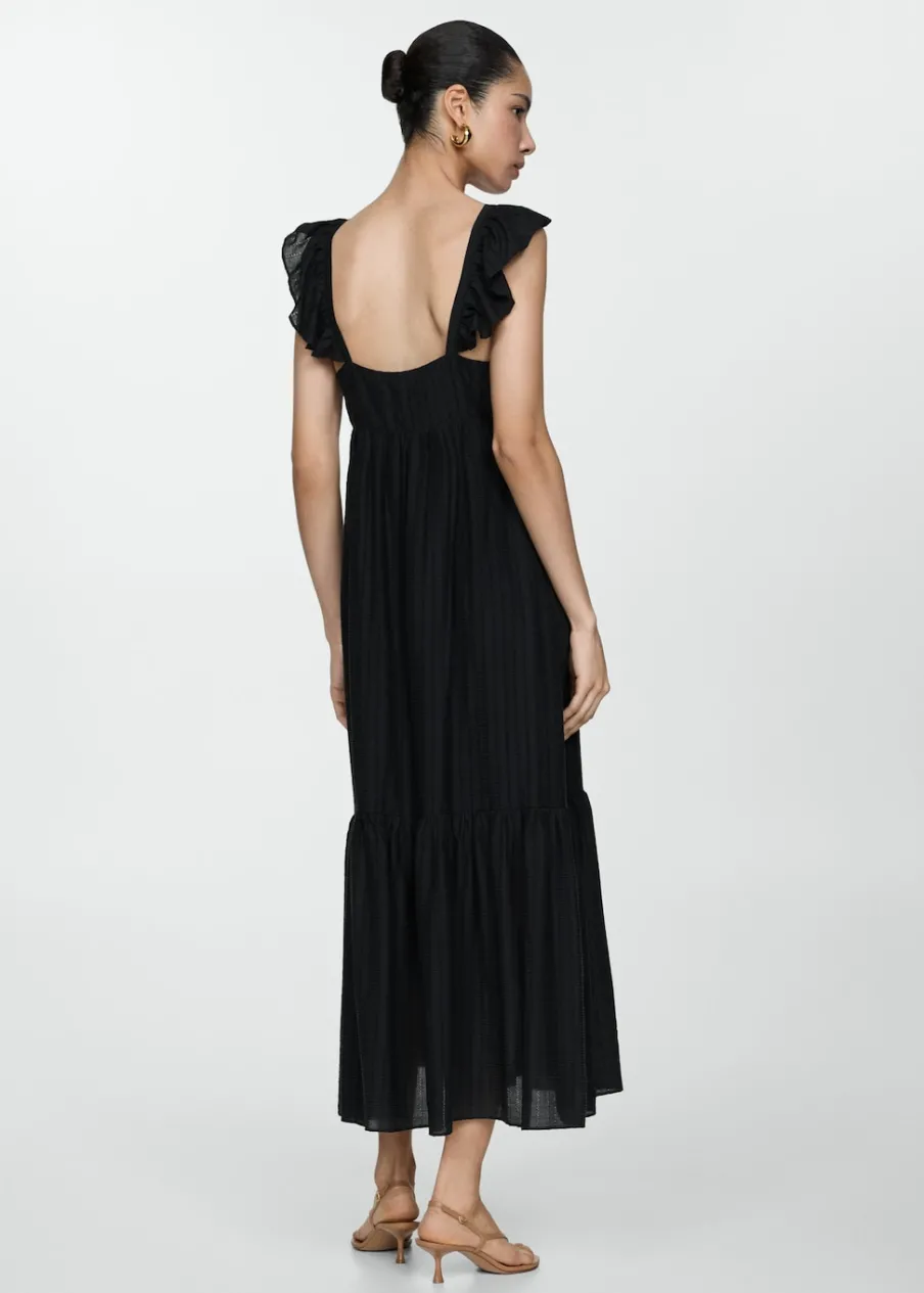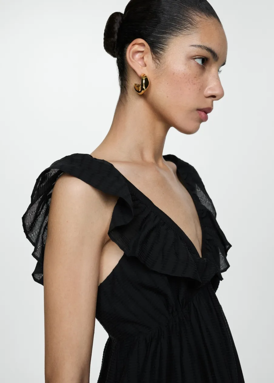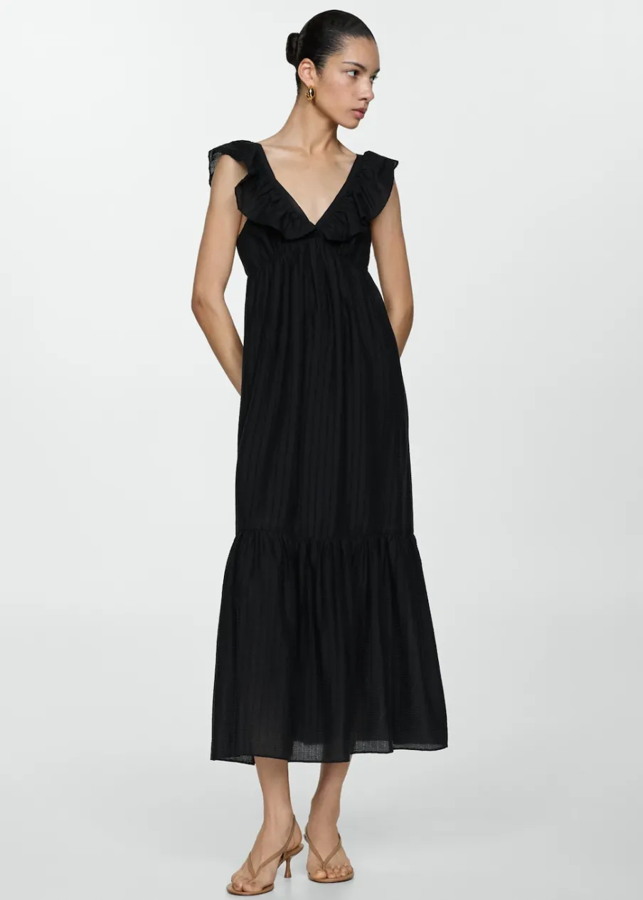 Tkanina mieszana z lyocellem. Teksturowana tkanina. Model evasé. Model w dużym rozmiarze. Model długi. Bez rękawów. Dekolt V. Szerokie ramiączka. Bez zapięcia. Dostępne w Plus Size.