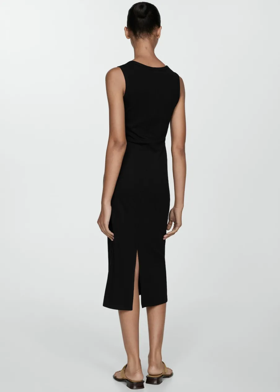 OpisTkanina ze ściągaczowej dzianiny. Krój do kolan. Model evasé. Okrągły dekolt. Bez rękawów. Szerokie ramiącz…