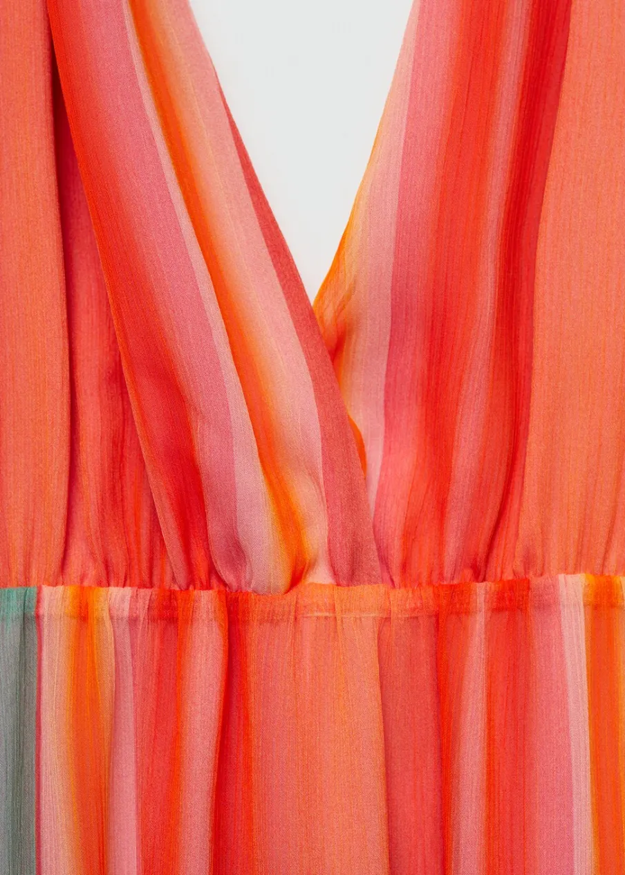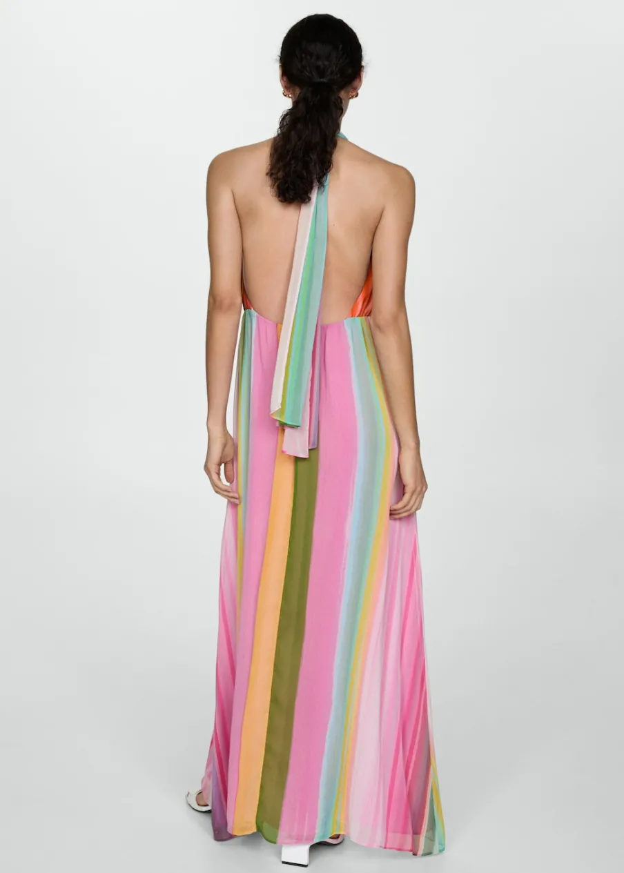 Lejąca tkanina. Model długi. Model prosty. Dekolt V. Skrzyżowane wycięcie na plecach. Bez rękawów. Szerokie ramiączka. Bez zapięcia. Ozdobny węzeł. Wewnętrzna podszewka. Nadruk.