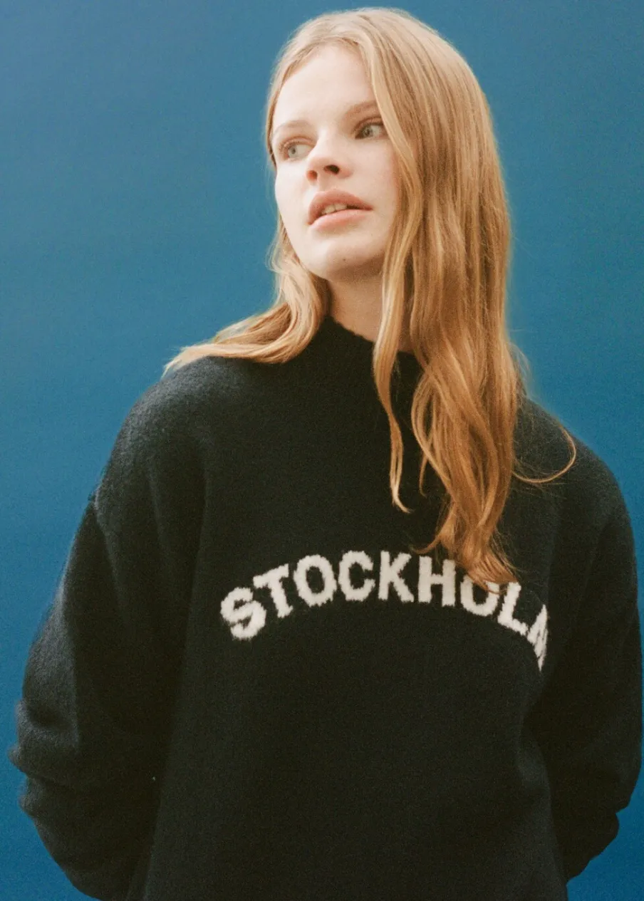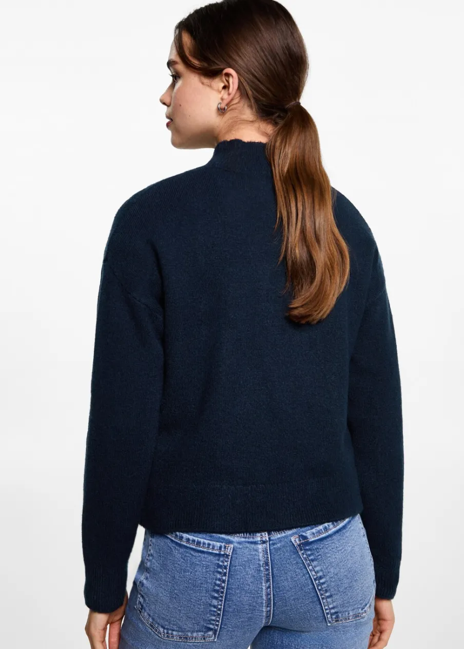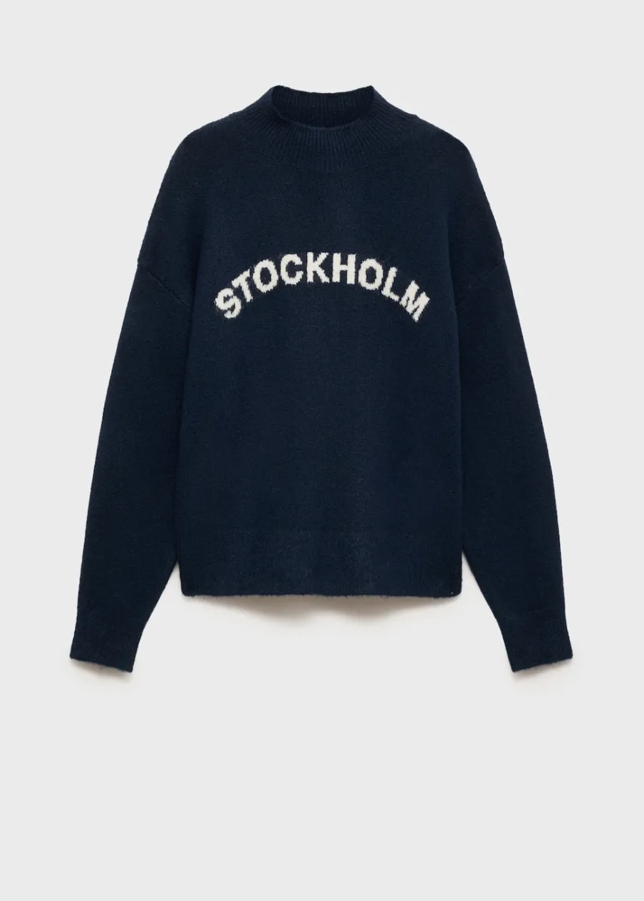 Dzianina średniej grubości. Kontrastowy napis. Półgolf. Długi rękaw.