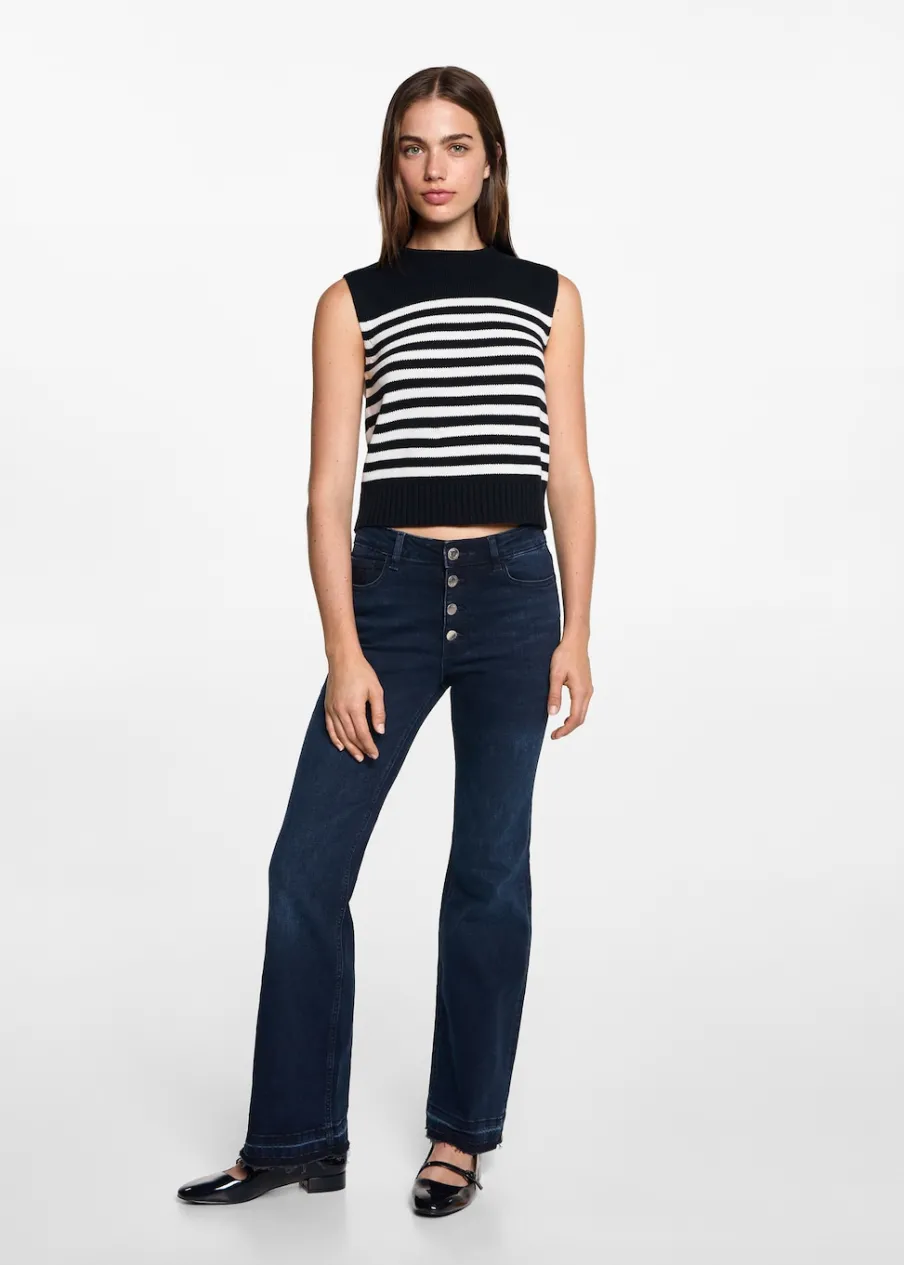 100% bomull. Dzianinowa tkanina. Model prosty. Okrągły dekolt. Bez rękawów. Modelka ma 172 cm wzrostu i nosi rozmiar M. Powrót do szkoły. Wzór w paski.