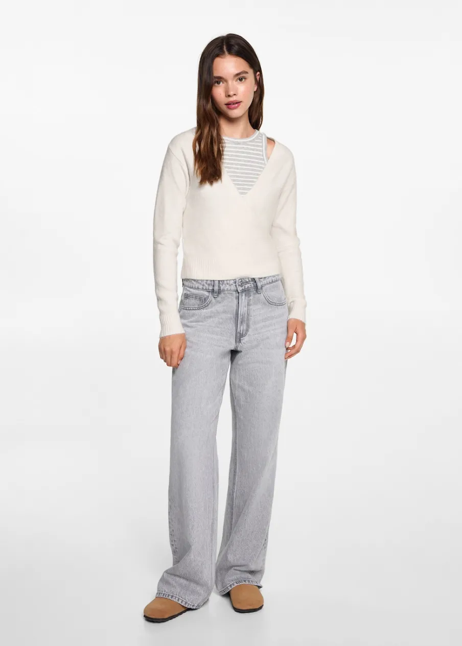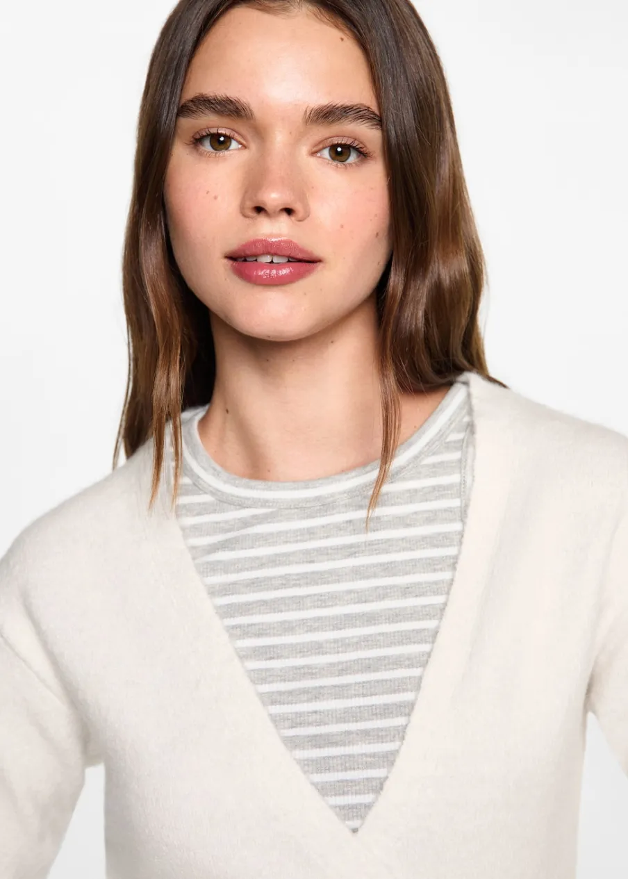 OpisDekolt V. Model zakładany. Modelka ma 172 cm wzrostu i nosi rozmiar M. Długi rękaw. Model prosty. Powrót do szko…