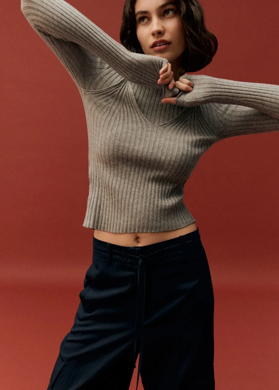 OpisTkanina z cienkiej dzianiny. Ściągaczowa dzianina. Slim-fit. Okrągły dekolt. Długi rękaw. Powrót do szkoły. …