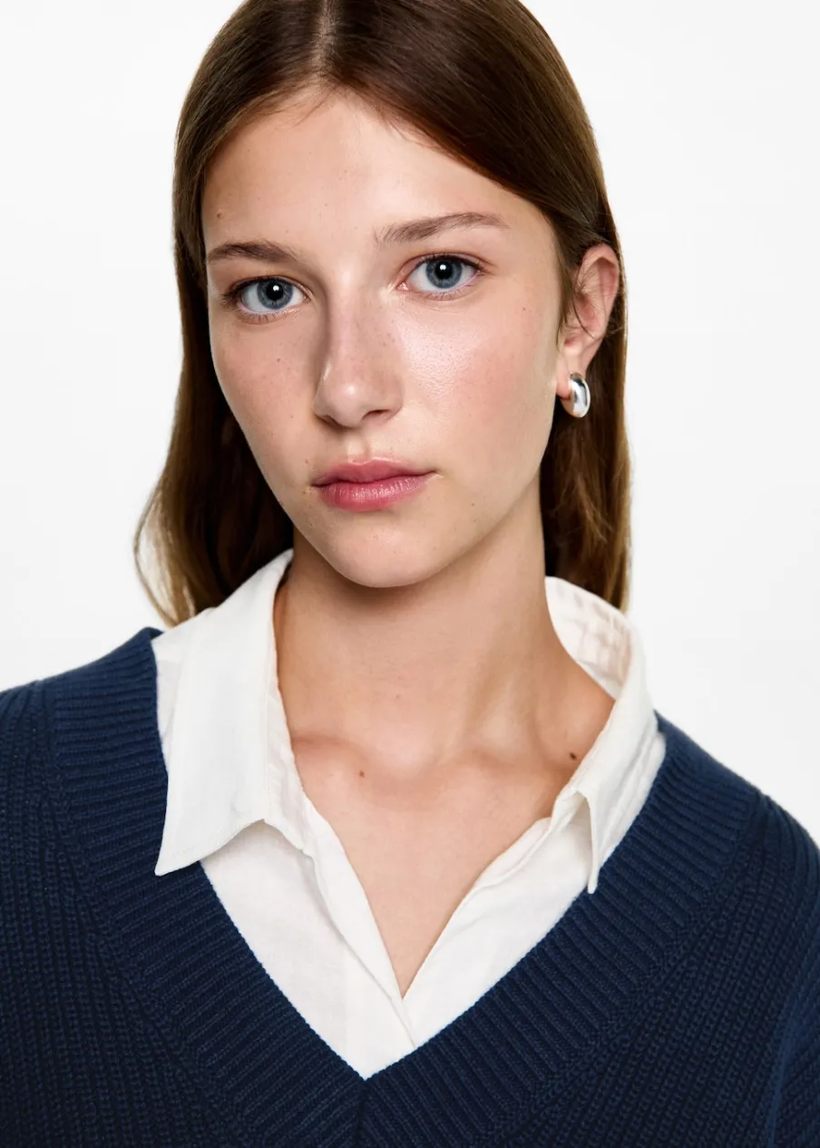 Opis100% bomull. Tkanina z bawełną. Model prosty. Dekolt V. Długi rękaw.