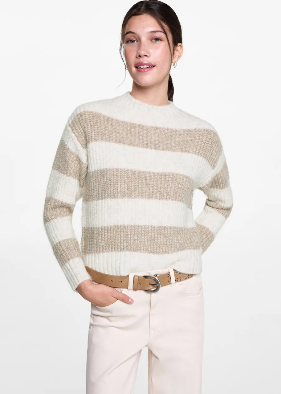 OpisTkanina z grubej dzianiny. Okrągły dekolt. Długi rękaw. Bez zapięcia. Modelka ma 172 cm wzrostu i nosi rozmiar …