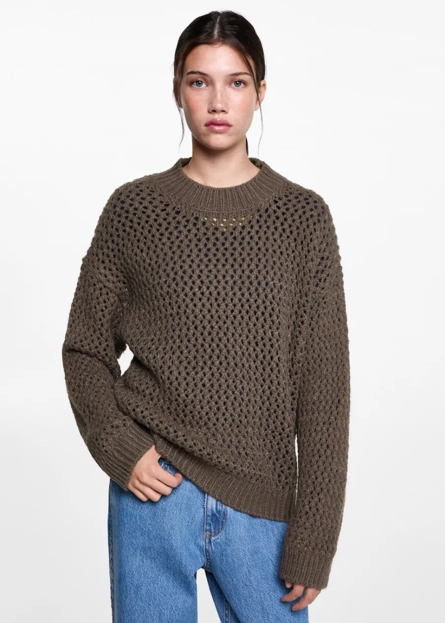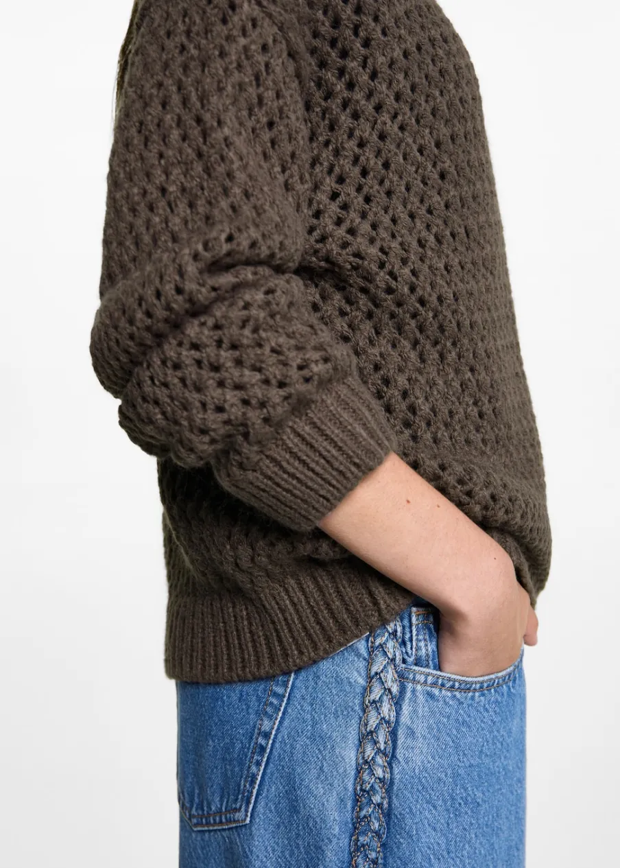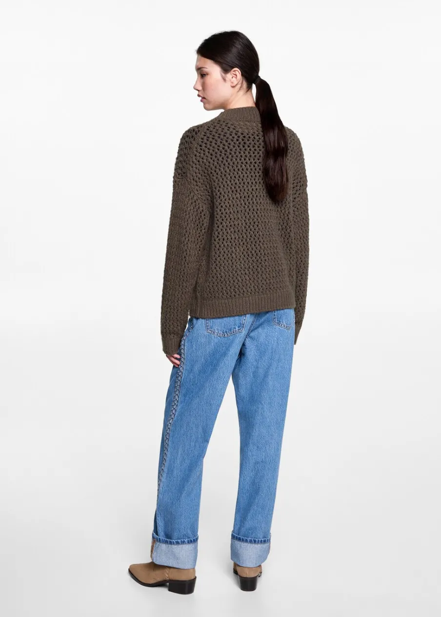 OpisDzianina. Model prosty. Okrągły dekolt. Długi rękaw. Modelka ma 172 cm wzrostu i nosi rozmiar M.