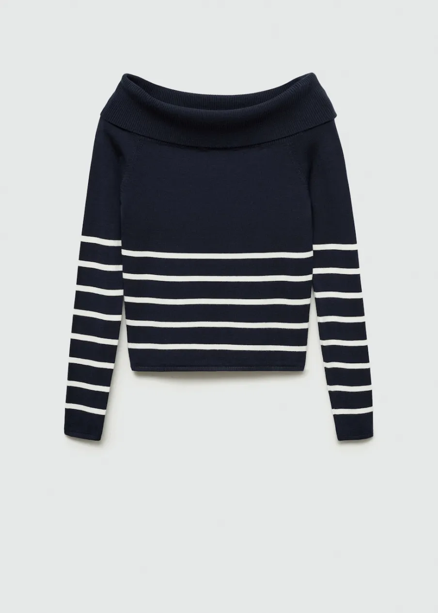 OpisModel prosty. Odkryte ramiona. Deseń crop. Długi rękaw. Wzór w paski. Tkanina z wiskozy.